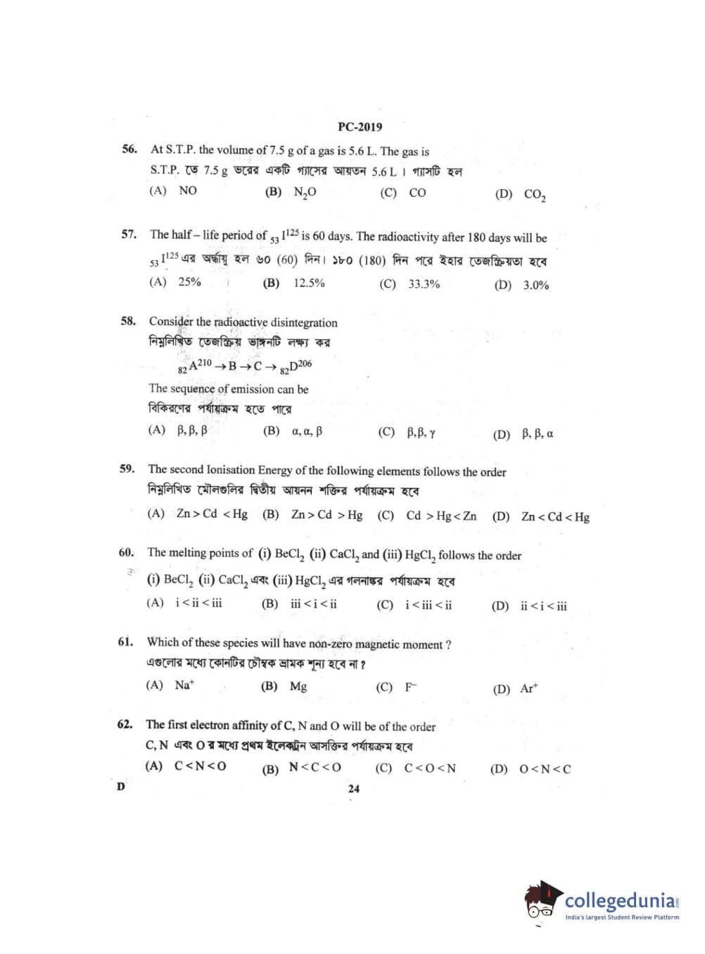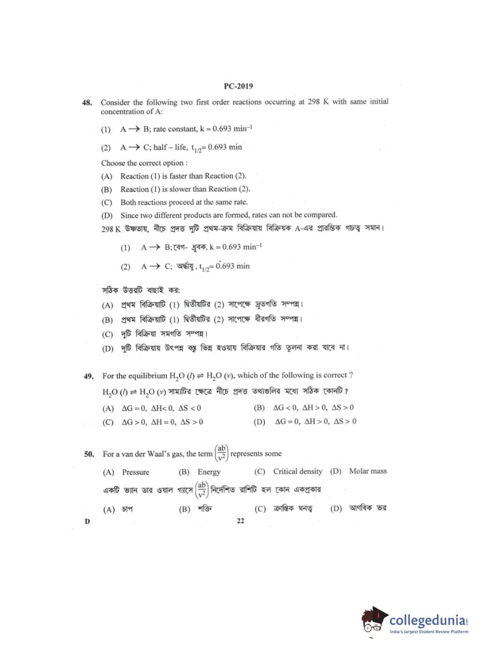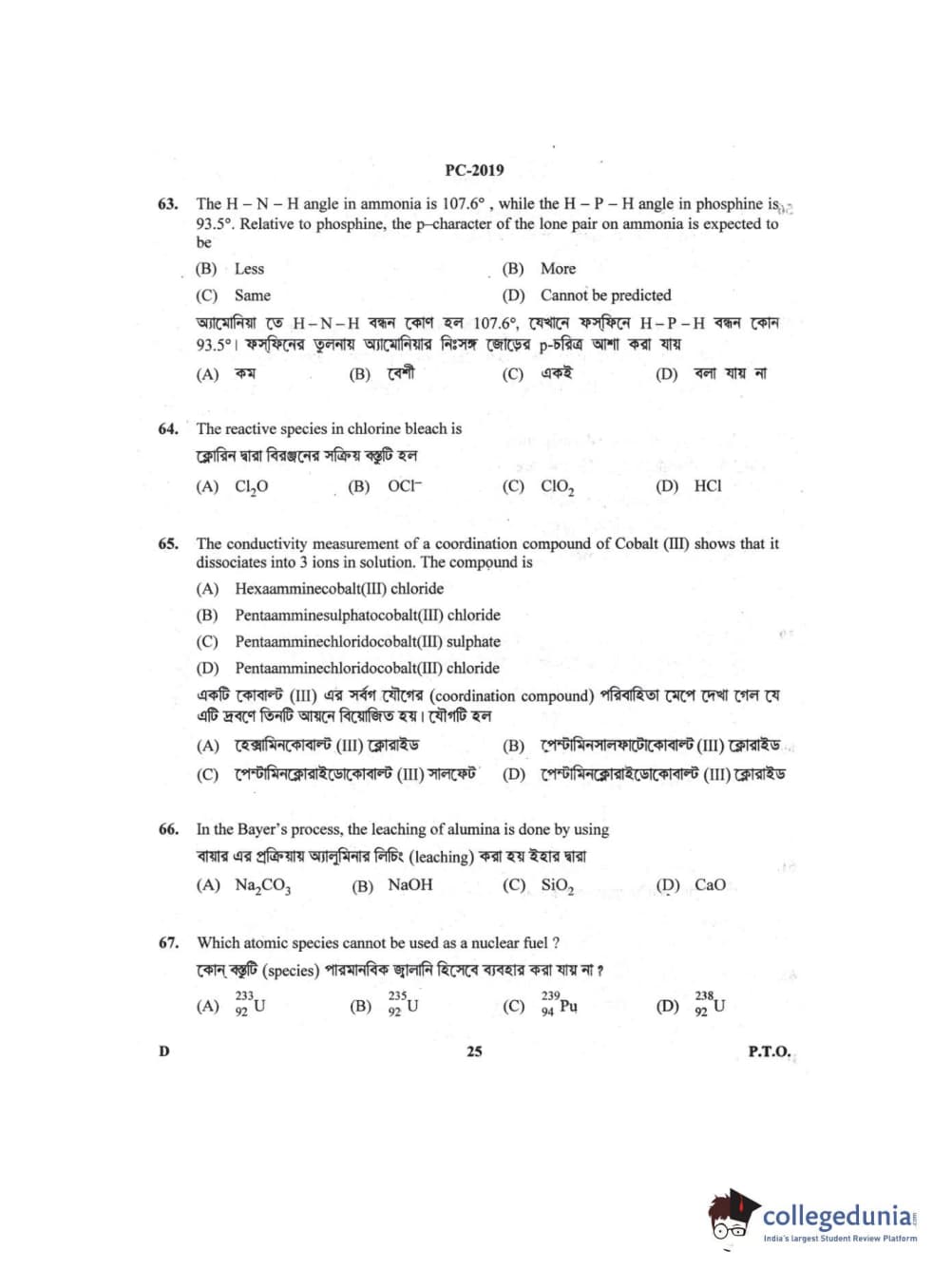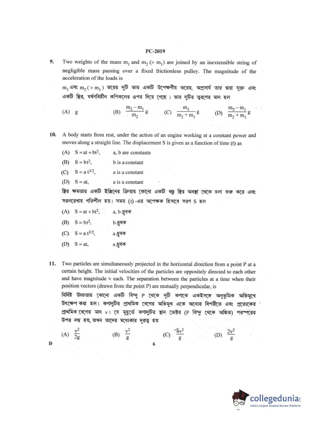 Collegedunia has provided WBJEE Previous Year Question paper pdf with answer key in the links given below: