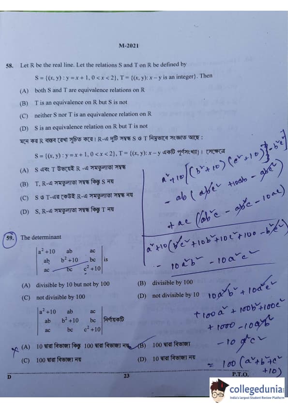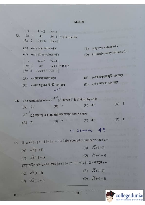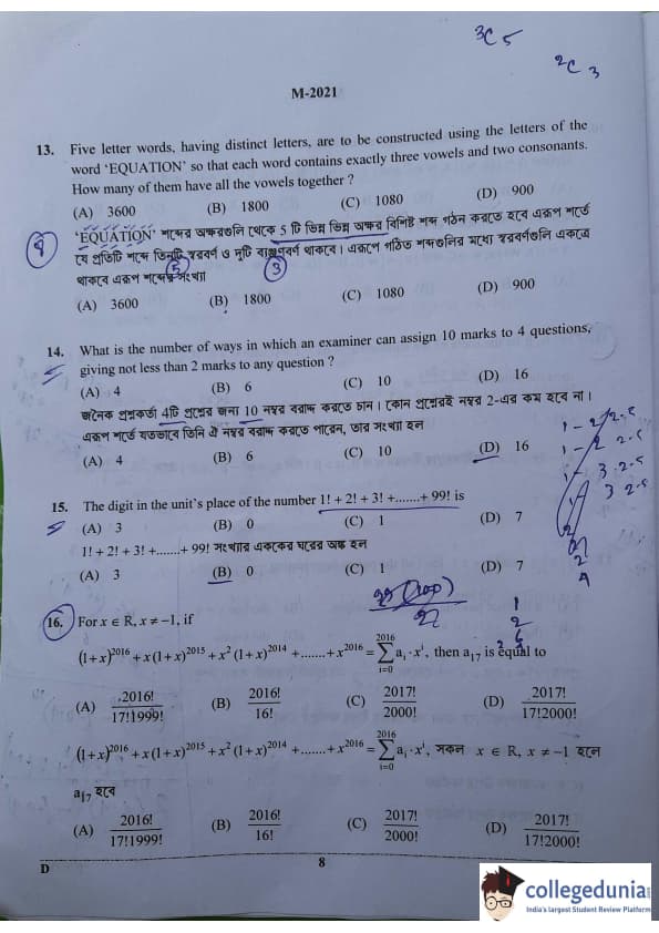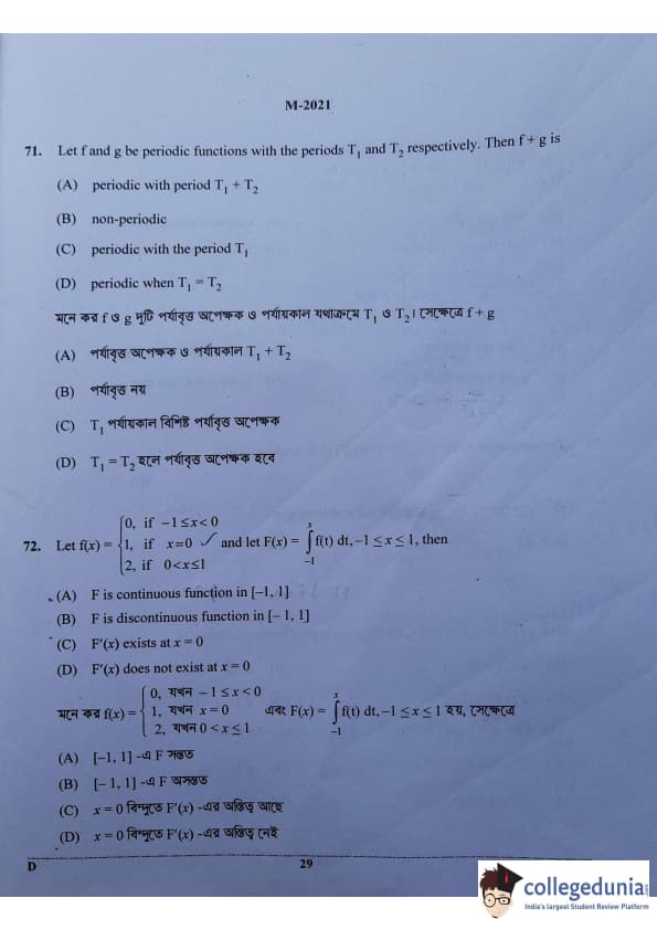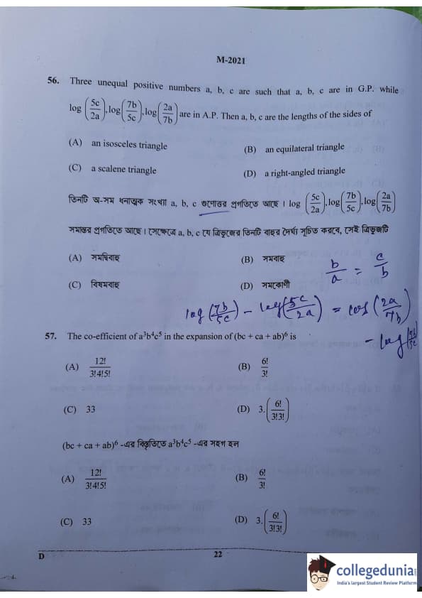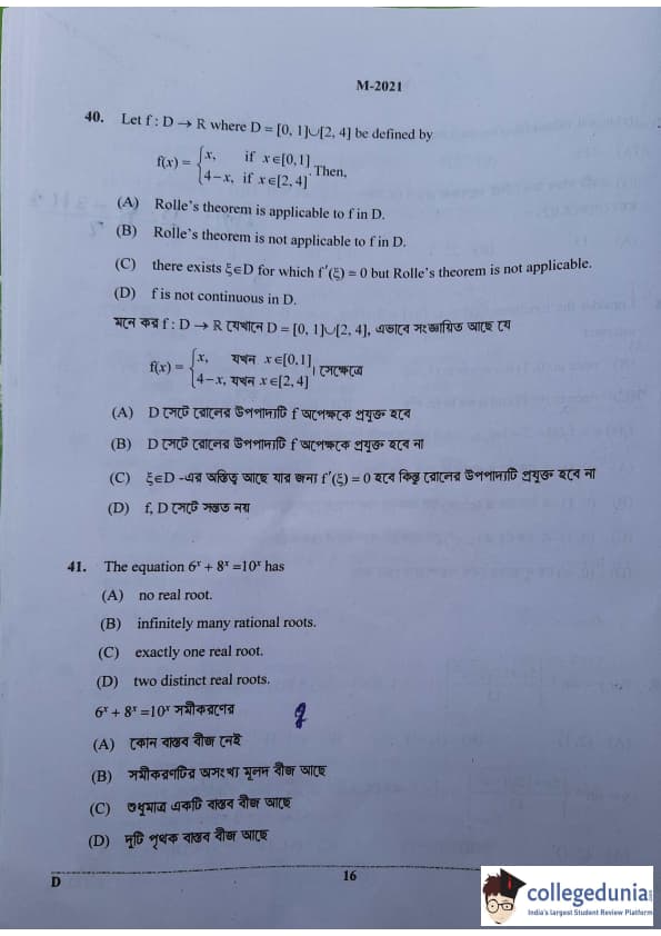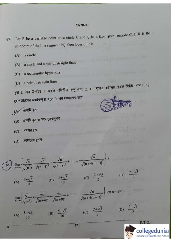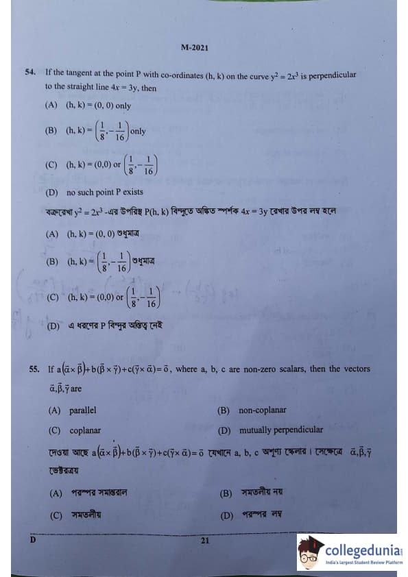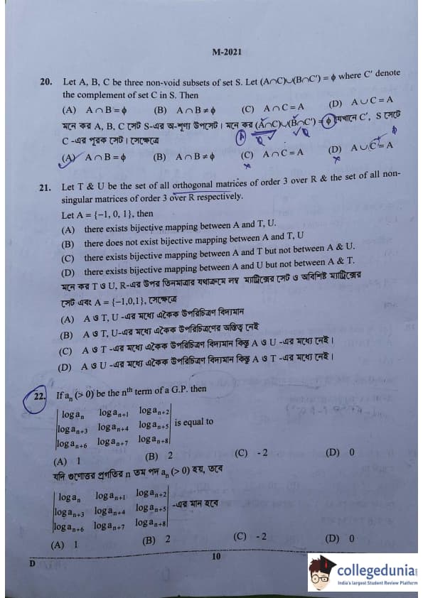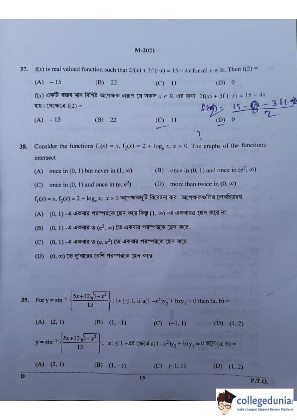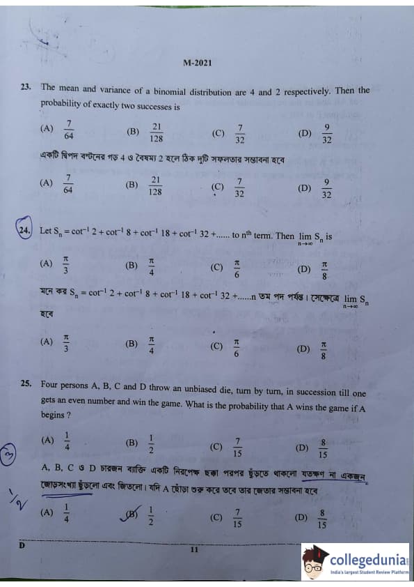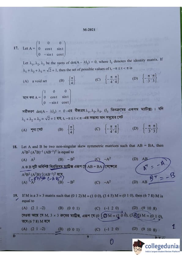 WBJEE 2021 Mathematics Question paper with answer key pdf conducted on Jul-17 in Forenoon Session for Set D is available for download. The exam was successfully organized by West Bengal Joint Entrance Examination Board (WBJEEB). In terms of difficulty level, WBJEE was of Moderate level. The question paper comprised a total of 75 questions.