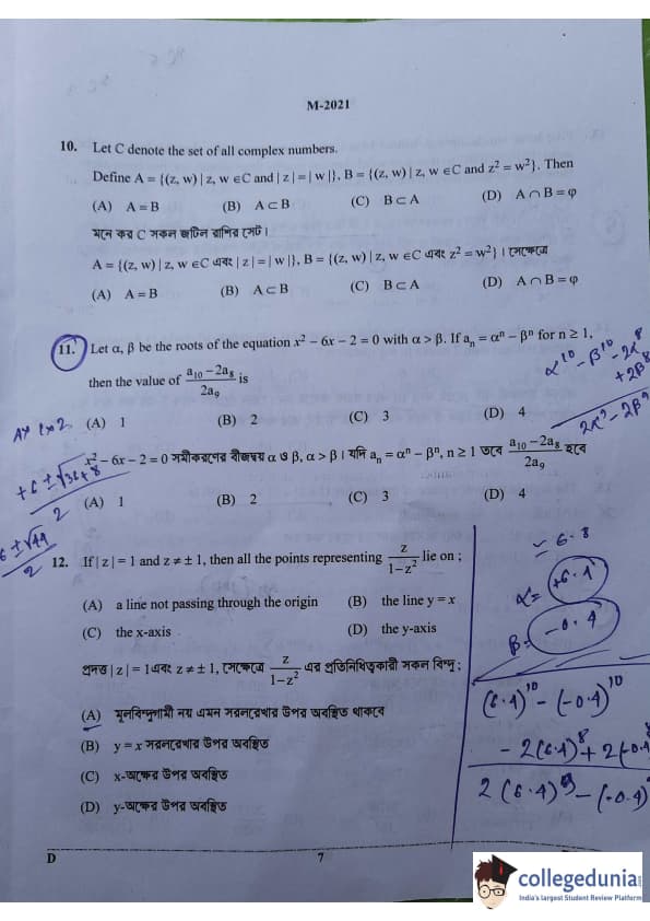 WBJEE 2021 Mathematics Question Paper with Answer Key PDF for Forenoon Session