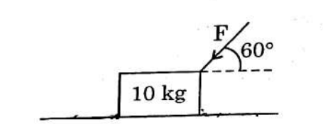 What force F is required to start moving a 10 kg block shown in the figure if it acts at an angle of 60° as shown? (µ_s = 0.6)