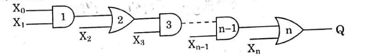 In the given network of AND and OR gates, output Q can be written as (assuming n even):