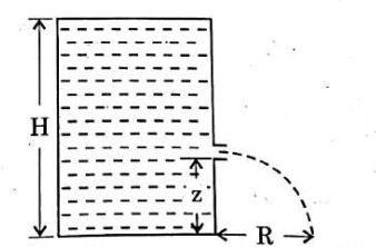 Water is filled in a cylindrical vessel of height H. A hole is made at height z from the bottom, as shown in the figure. The value of z for which the range R of the emerging water through the hole will be maximum is:
