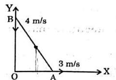 A uniform rod AB of length 1 m and mass 4 kg is sliding along two mutually perpendicular frictionless walls OX and OY. The velocity of the two ends of the rod A and B are 3 m/s and 4 m/s respectively, as shown in the figure. Then which of the following statement(s) is/are correct?