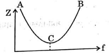 The variation of impedance Z of a series LCR circuit with the frequency of the source is shown in the figure. Which of the following statement(s) is/are true?