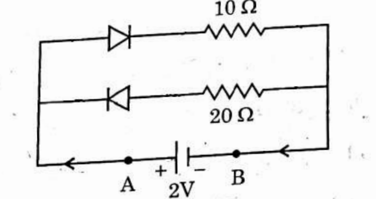 A 2V cell is connected across the points A and B as shown in the figure. Assume that the resistance of each diode is zero in forward bias and infinite in reverse bias. The current supplied by the cell is: