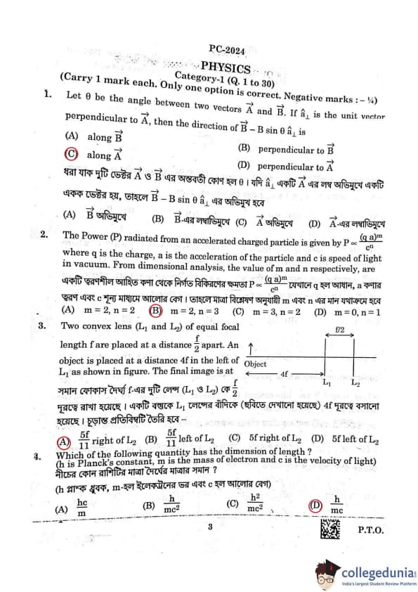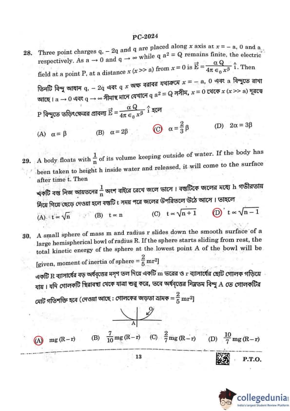 | WBJEE 2024 Physics Question Paper 2024 with Answer Key | Check Solutions |