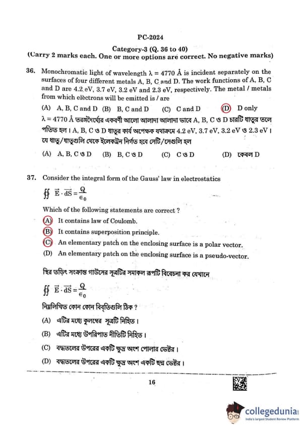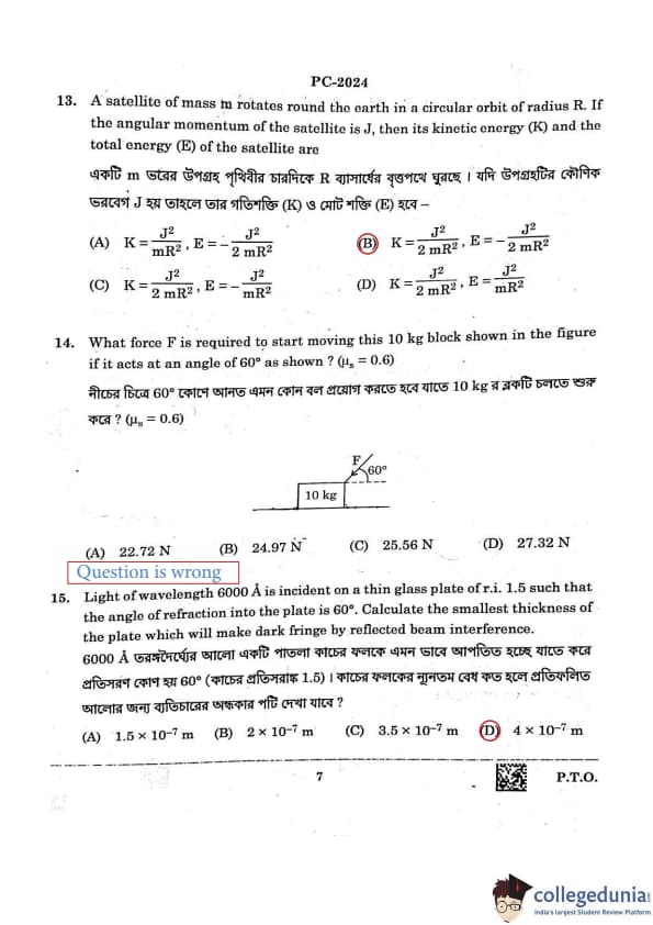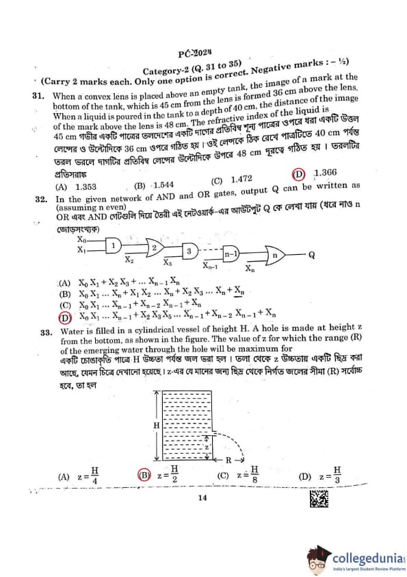 WBJEE 2024 Physics Question Paper with Answer Key PDF