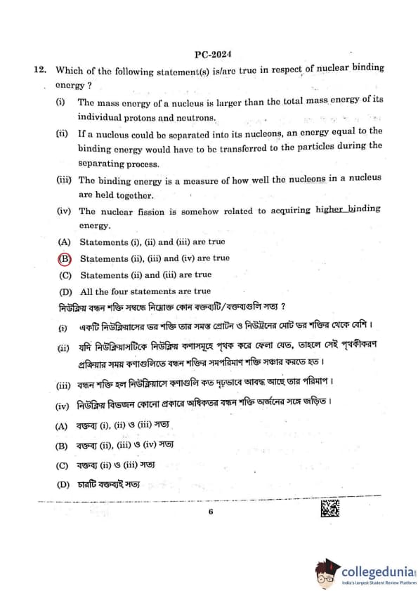 Which of the following statement(s) is/are true in respect of nuclear binding energy?