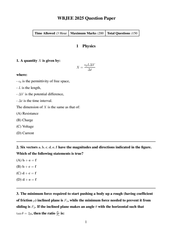 | WBJEE 2025 Question Paper with Answer Key | Download | Check Solutions |