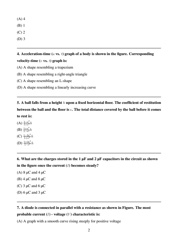 Acceleration-time (\( a \) vs. \( t \)) graph of a body is shown in the figure. Corresponding velocity-time (\( v \) vs. \( t \)) graph is: