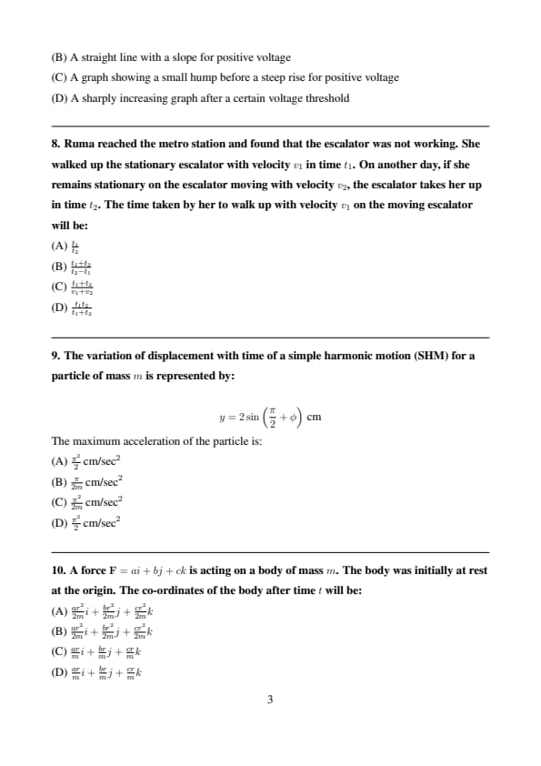 The variation of displacement with time of a simple harmonic motion (SHM) for a particle of mass \( m \) is represented by: