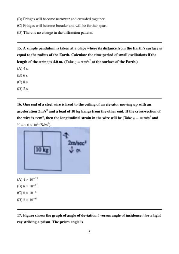 One end of a steel wire is fixed to the ceiling of an elevator moving up with an acceleration \( 2 \, m/s^2 \) and a load of 10 kg hangs from the other end. If the cross-section of the wire is \( 2 \, cm^2 \), then the longitudinal strain in the wire will be (Take \( g = 10 \, m/s^2 \) and \( Y = 2.0 \times 10^{11} \, N/m^2 \)).