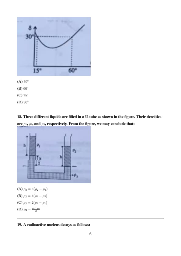 Three different liquids are filled in a U-tube as shown in the figure. Their densities are \( \rho_1 \), \( \rho_2 \), and \( \rho_3 \), respectively. From the figure, we may conclude that: