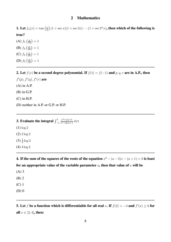 | Paper 1 | Mathematics | 2 hours | 75 MCQs | 100 marks |