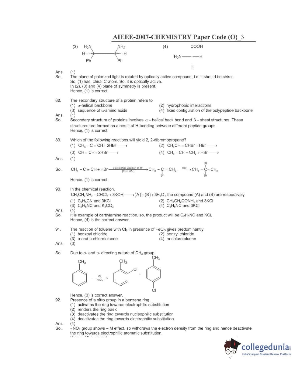 AIEEE 2007 Question paper with answer key pdf is available for download. help candidates with their exam preparations. AIEEE 2007 had a moderate level of difficulty and the examination consisted of 120 questions divided into Chemistry, Physics, and Mathematics. JEE Main replaced AIEEE in 2013 for engineering admissions in NITs, IIITs, and GFTIs in India.