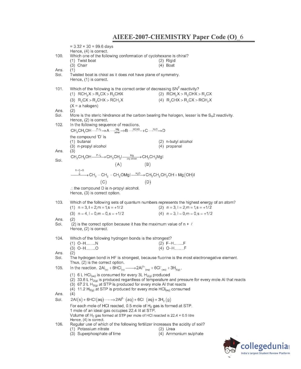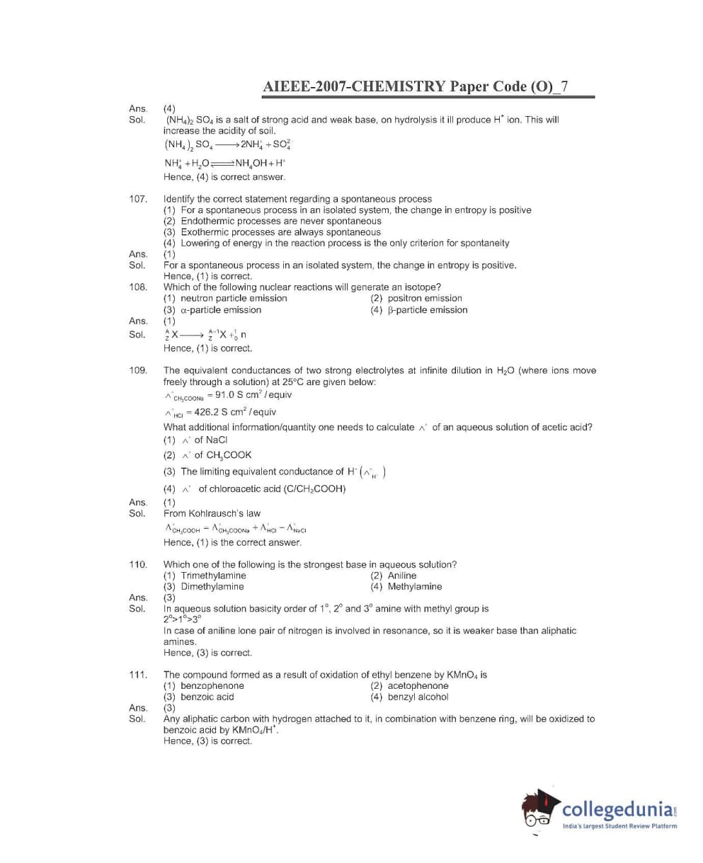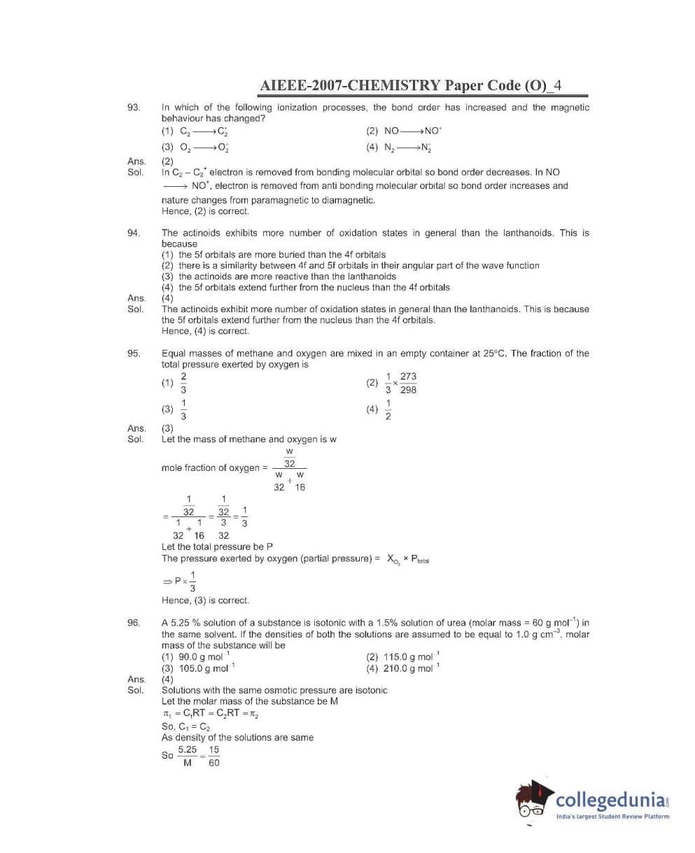 AIEEE 2007 Question Paper with Answer Key PDFs -May 23