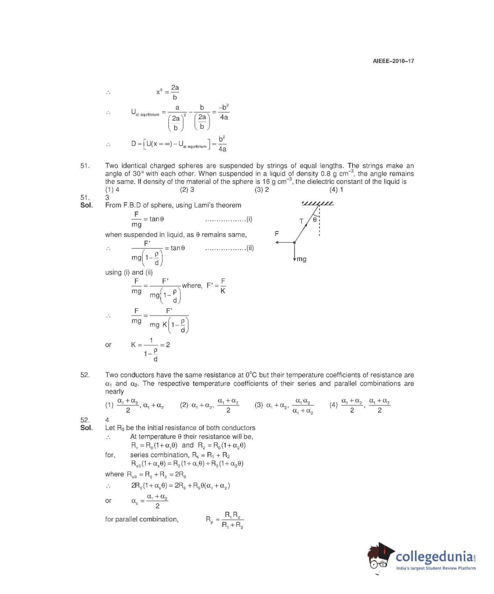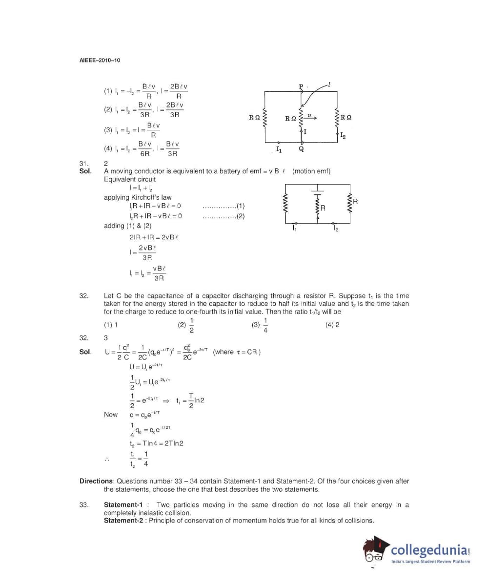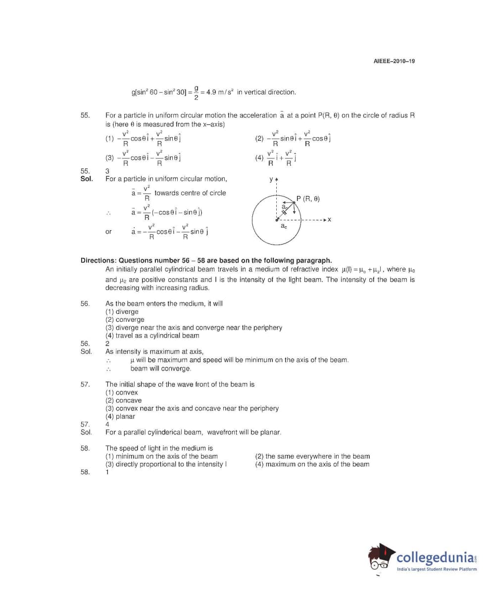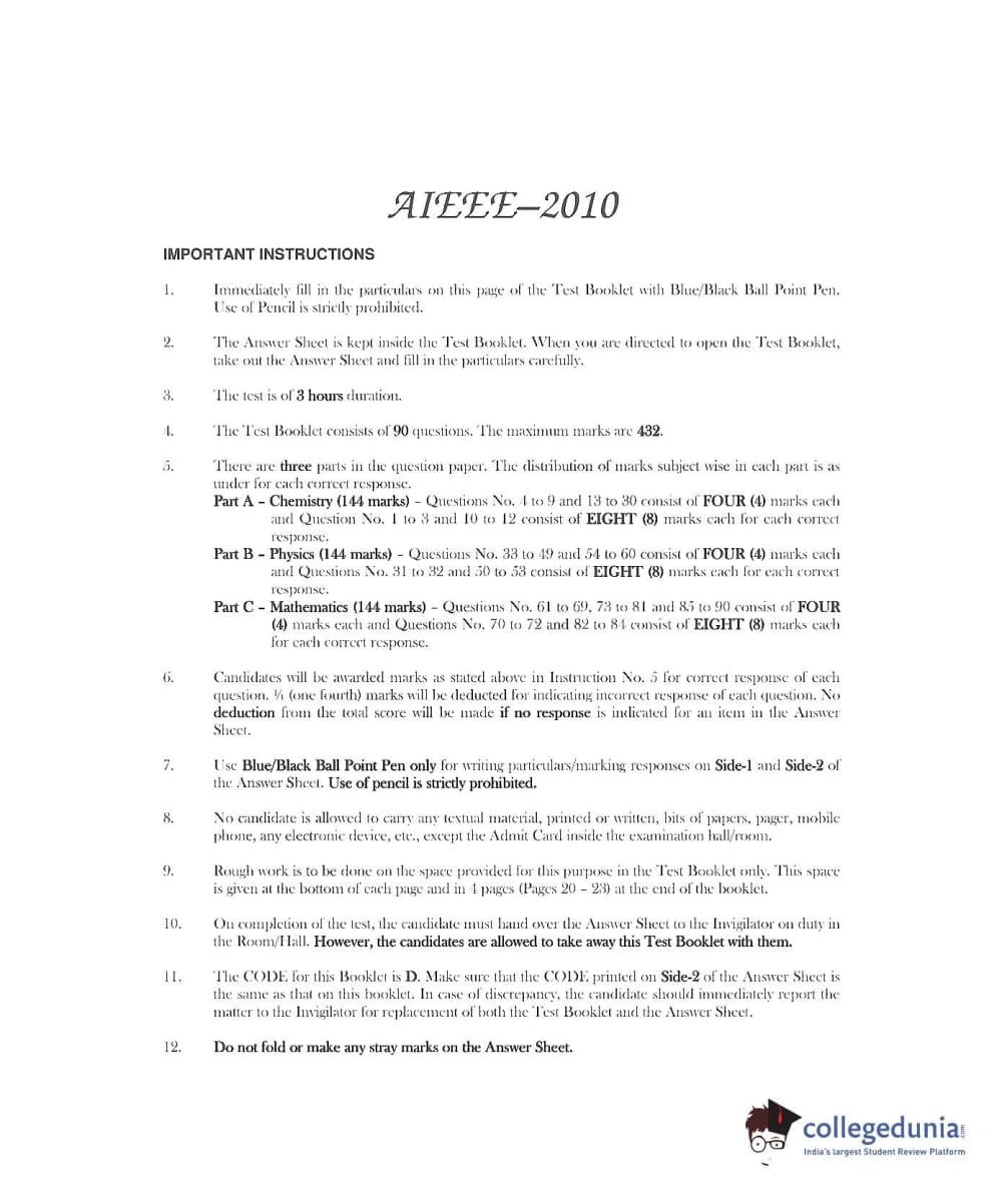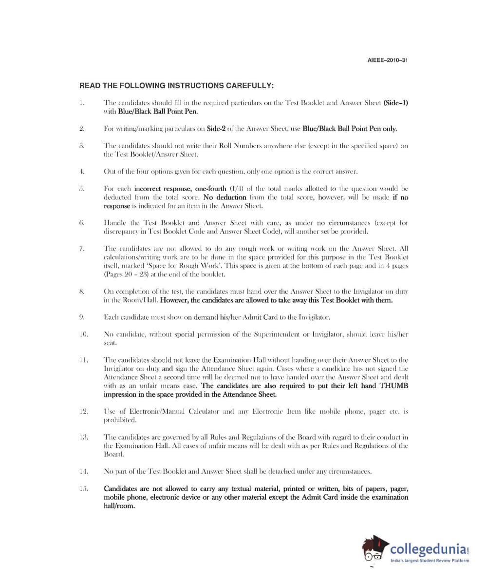 AIEEE 2010 Question paper with Answer Key PDFs - April 11