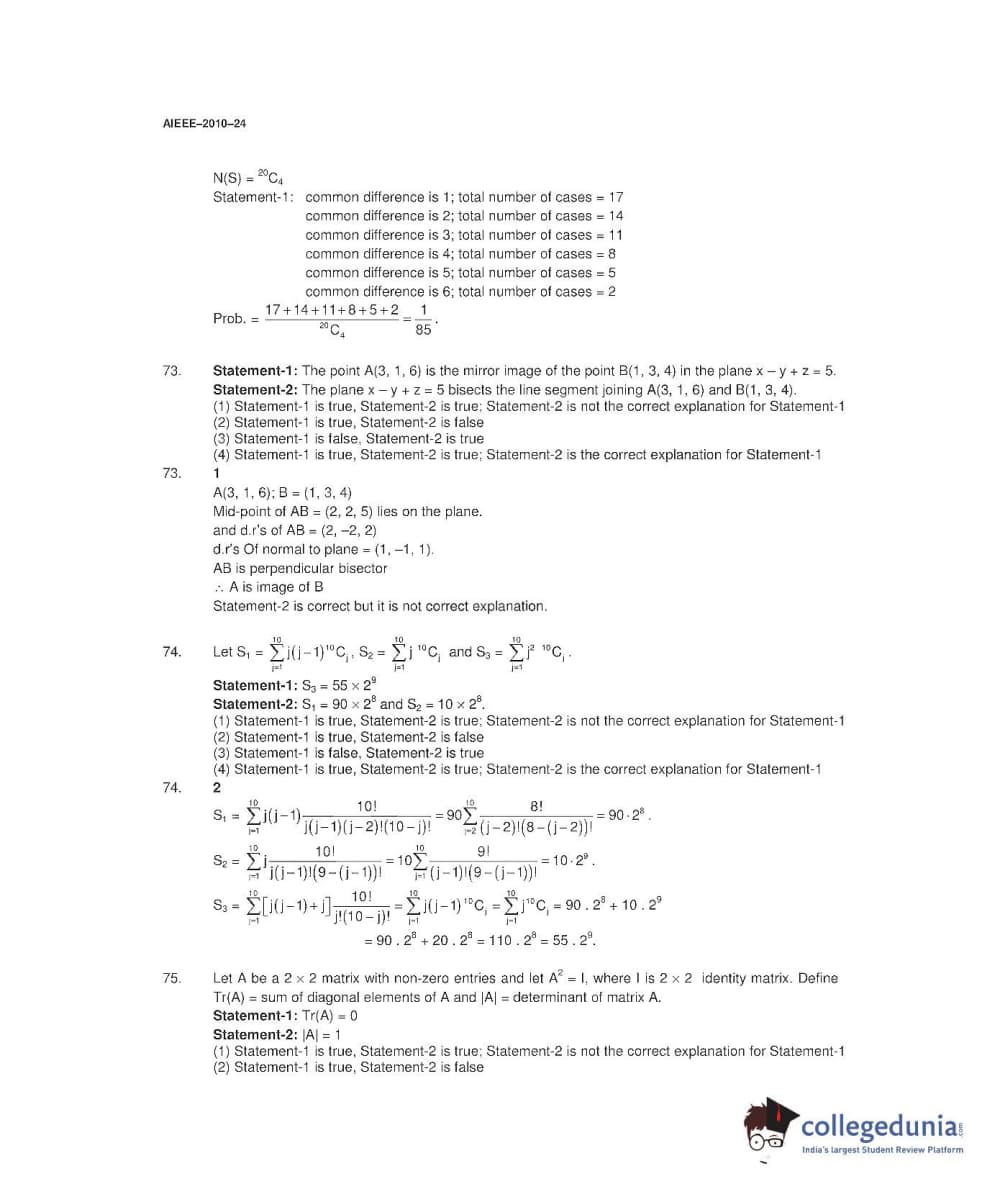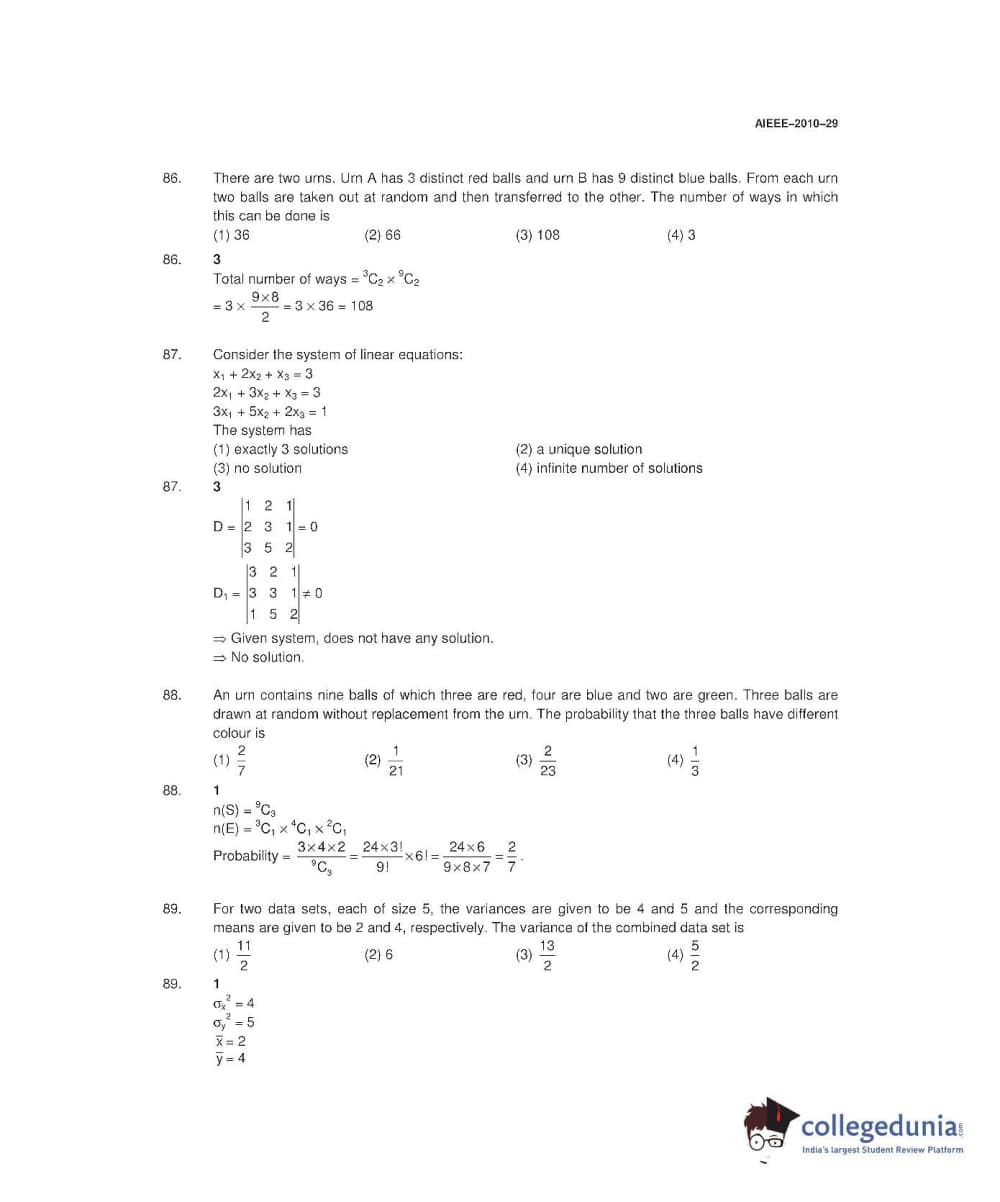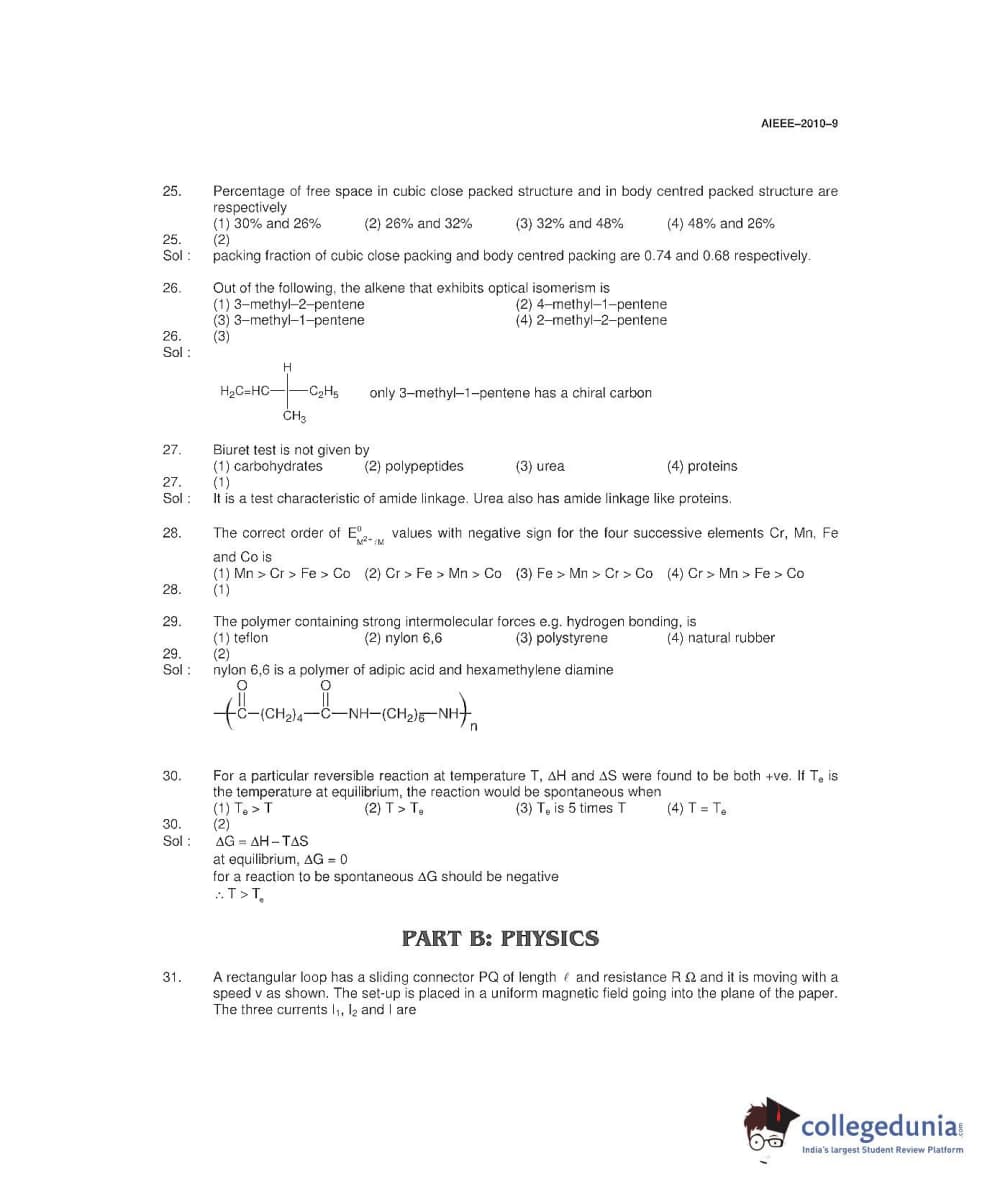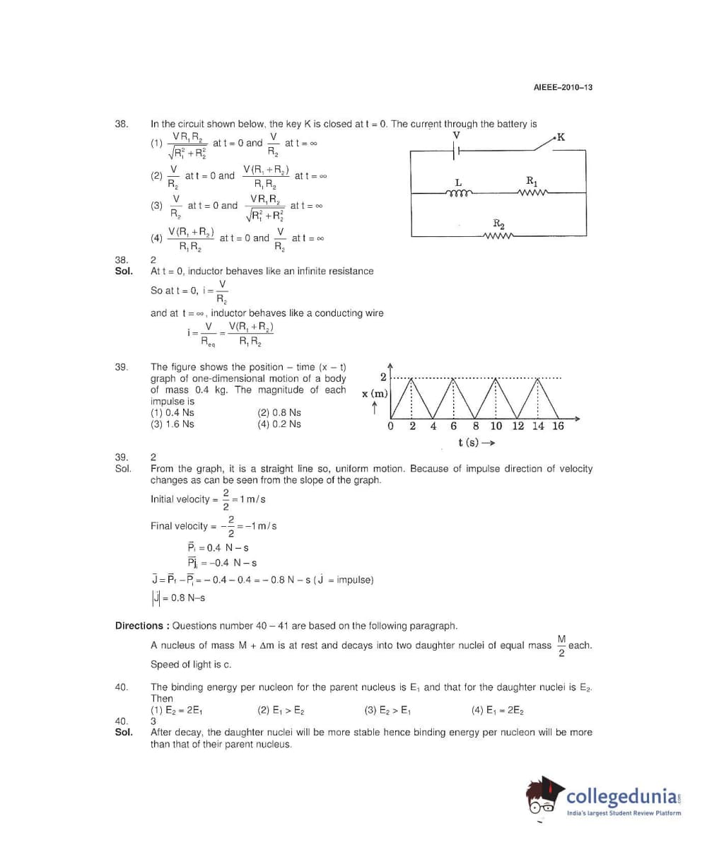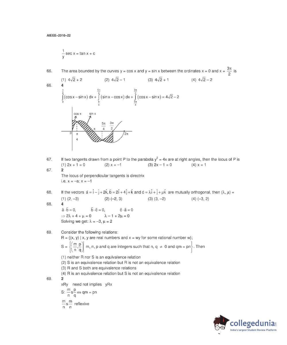 AIEEE 2010 Question paper with Answer Key PDFs - April 11