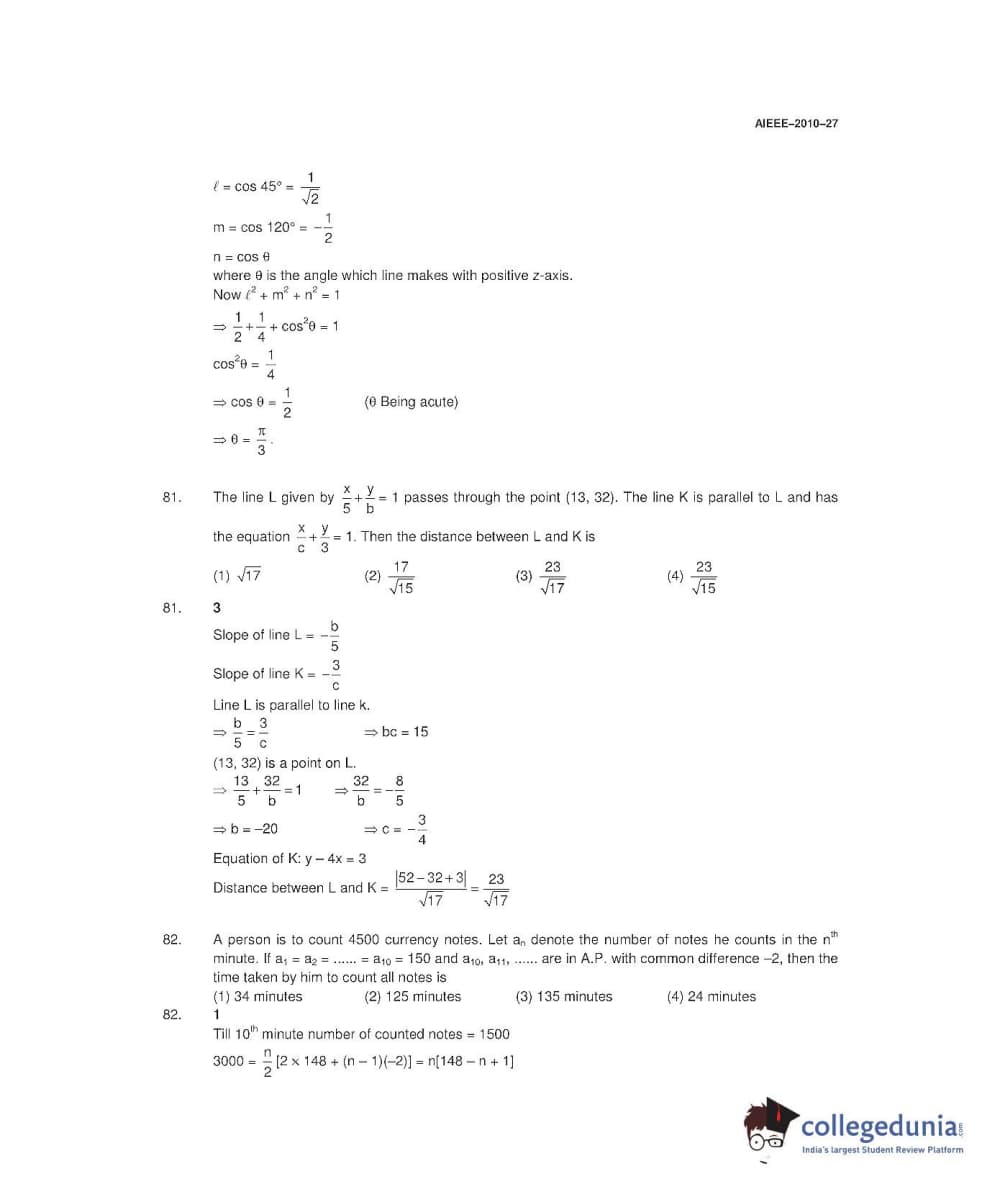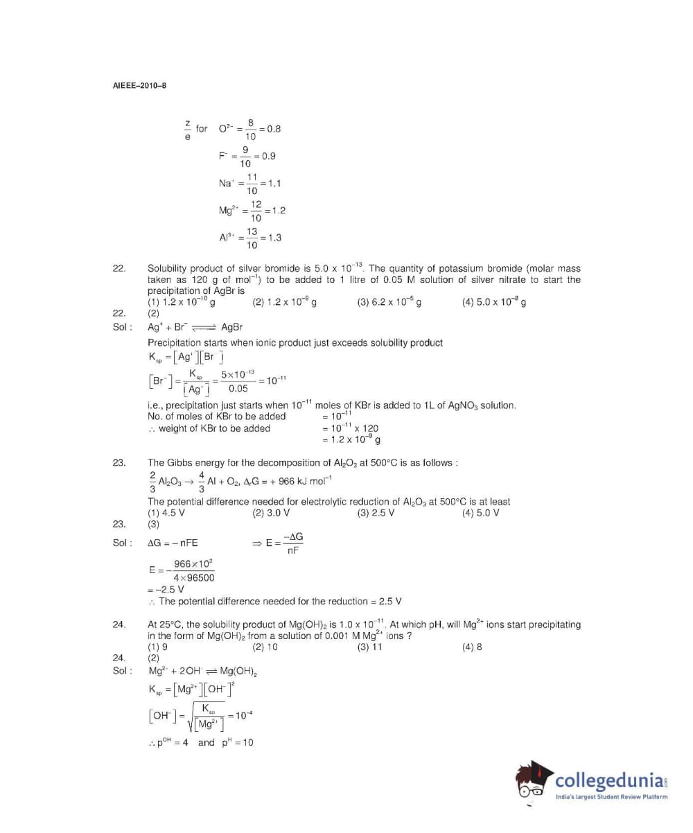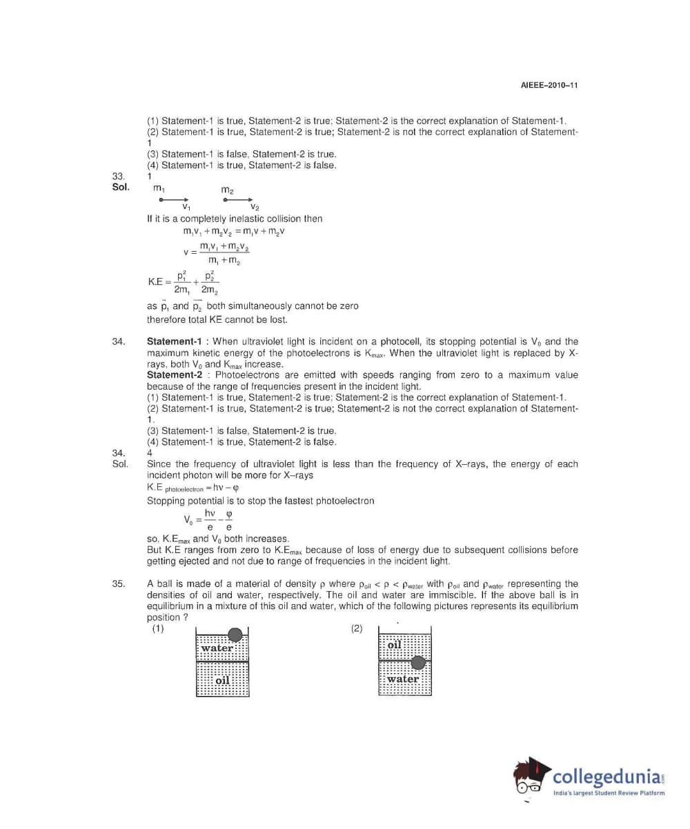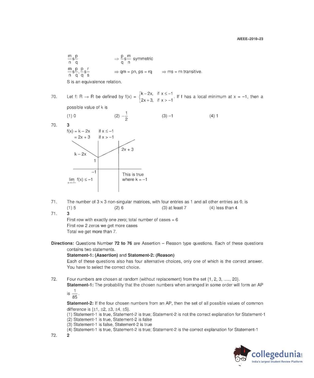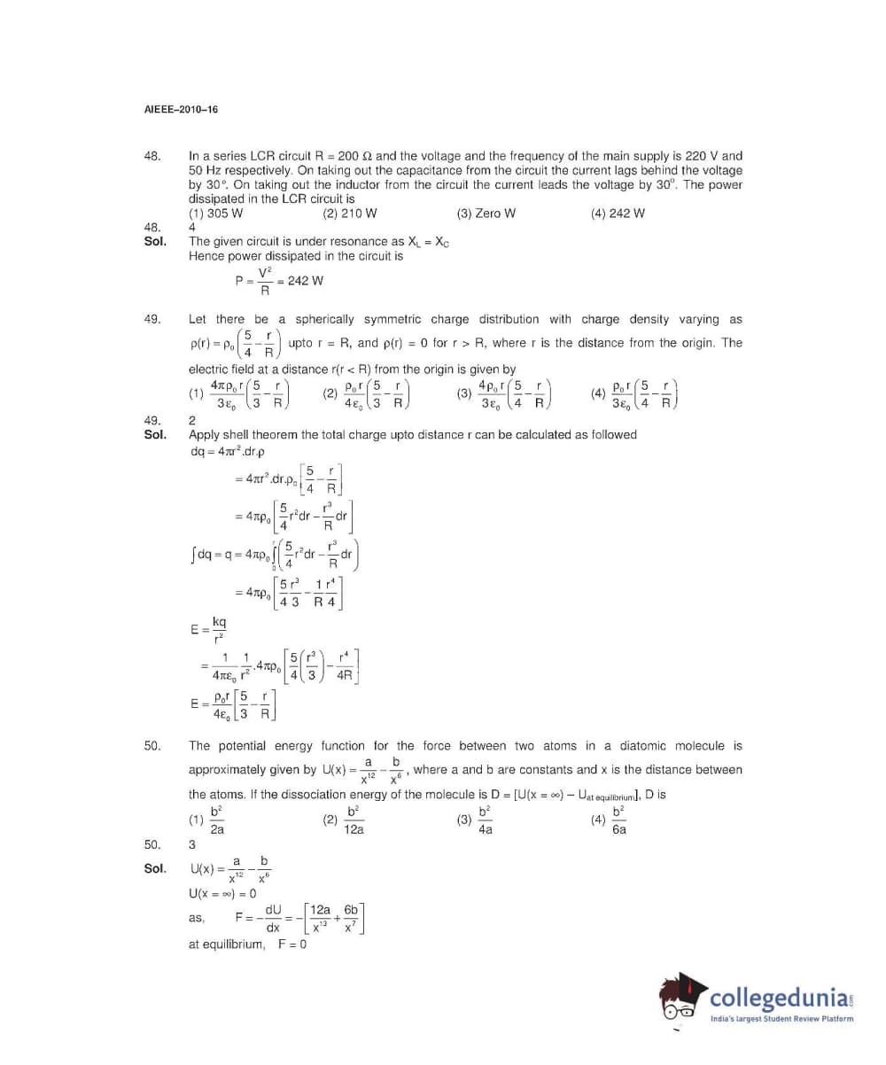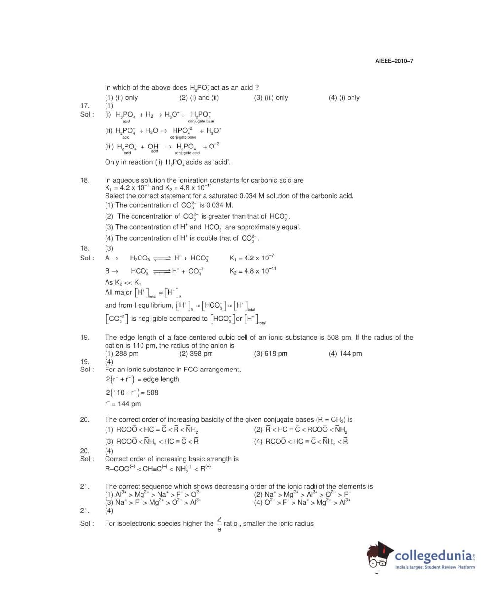 AIEEE 2010 Question paper with Answer Key PDFs - April 11
