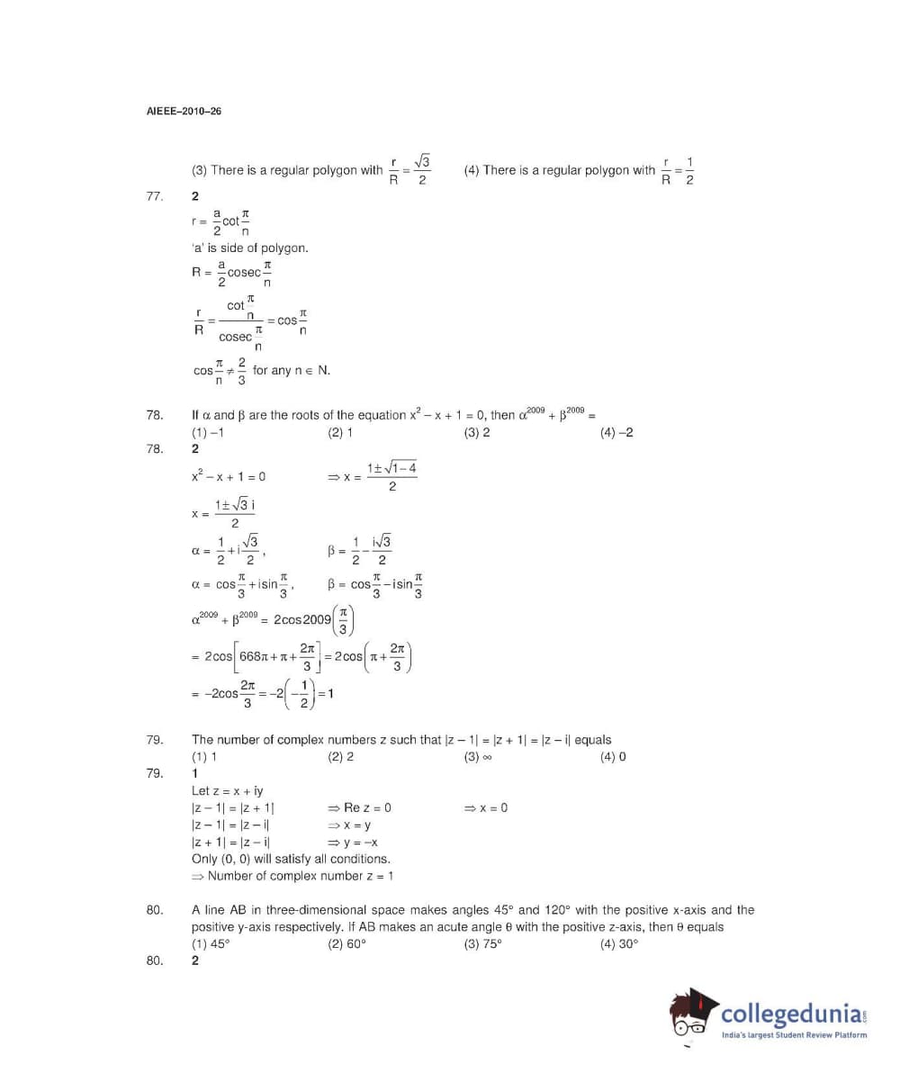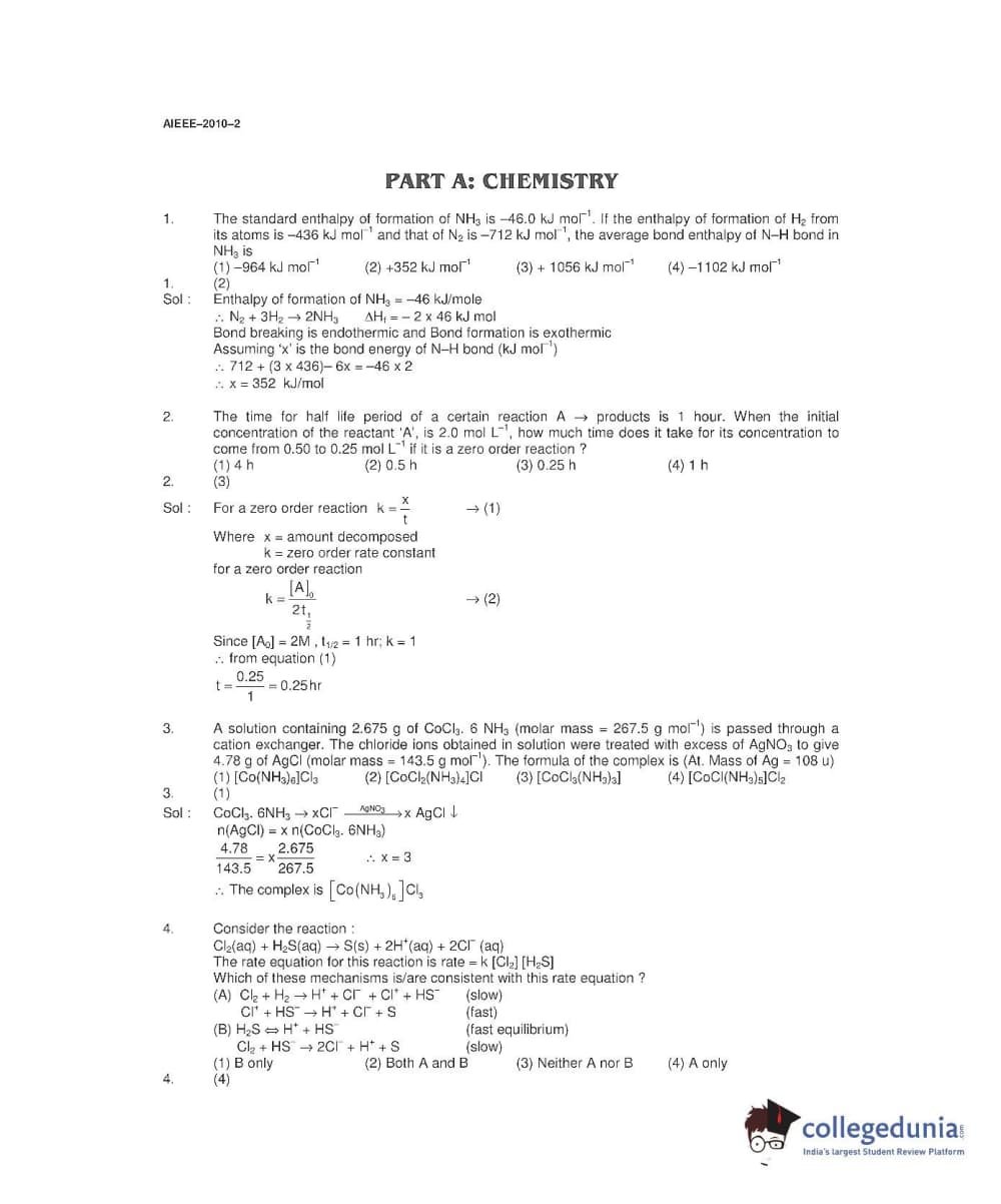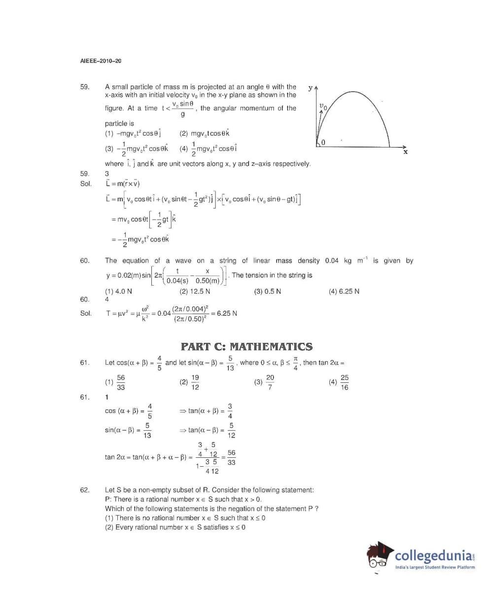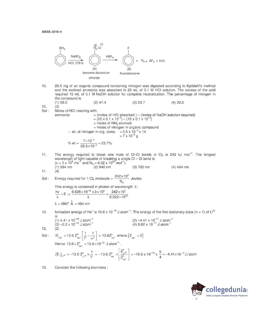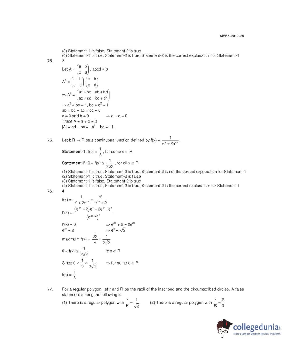 AIEEE 2010 Question paper with Answer Key PDFs - April 11