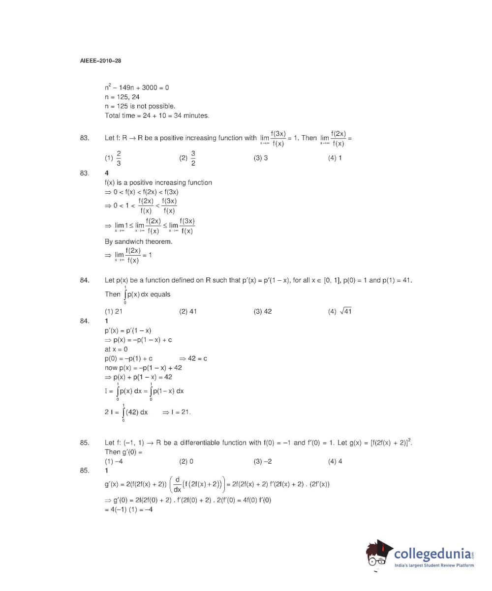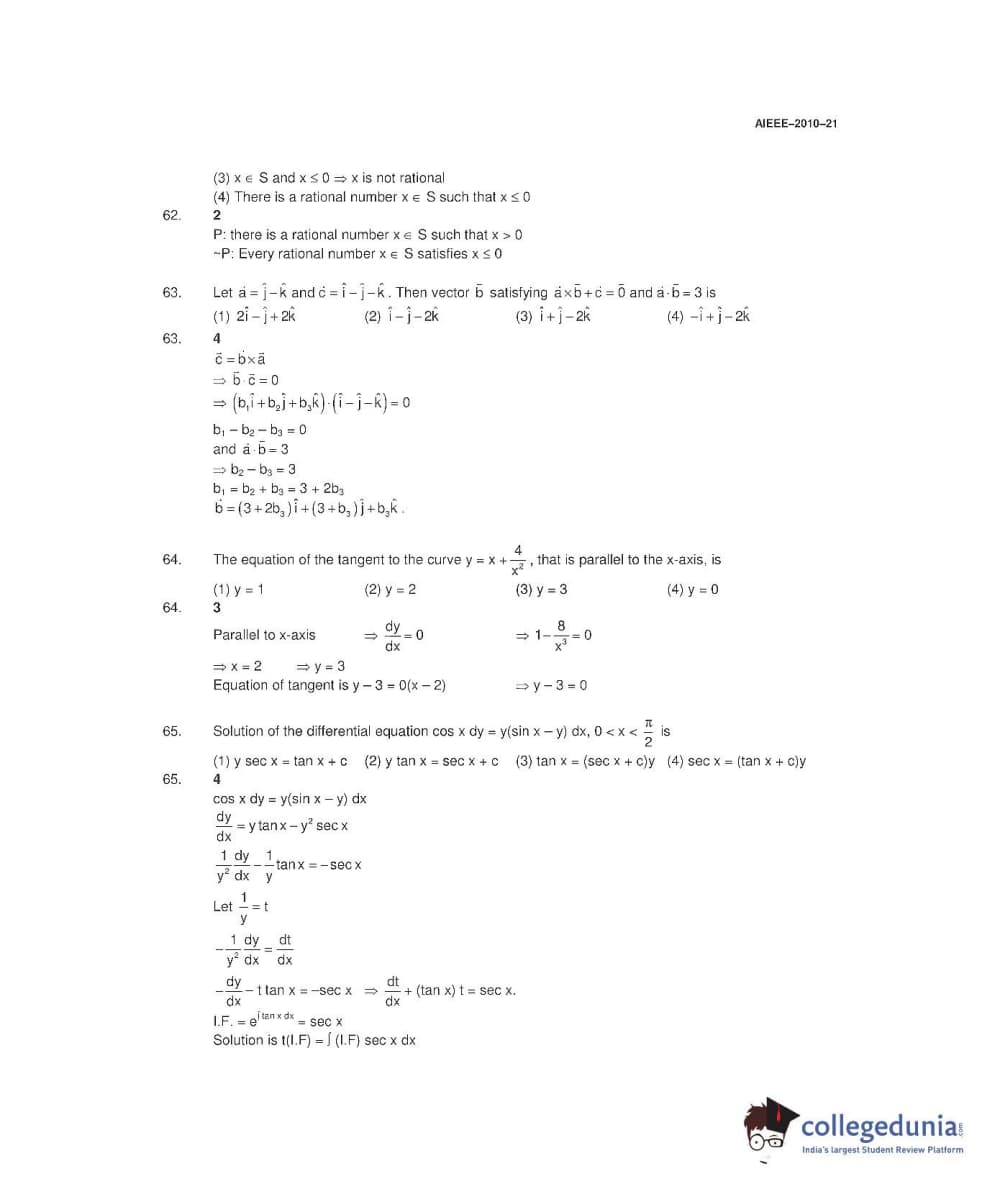 Mathematics was a lengthy section. The section was to test problem-solving skills and in-depth understanding of the concepts. The integer-type questions took a long time to solve. Algebra, Calculus, Trigonometry, Coordinate Geometry, and Vectors were the major topics asked in AIEEE 2010 question paper.