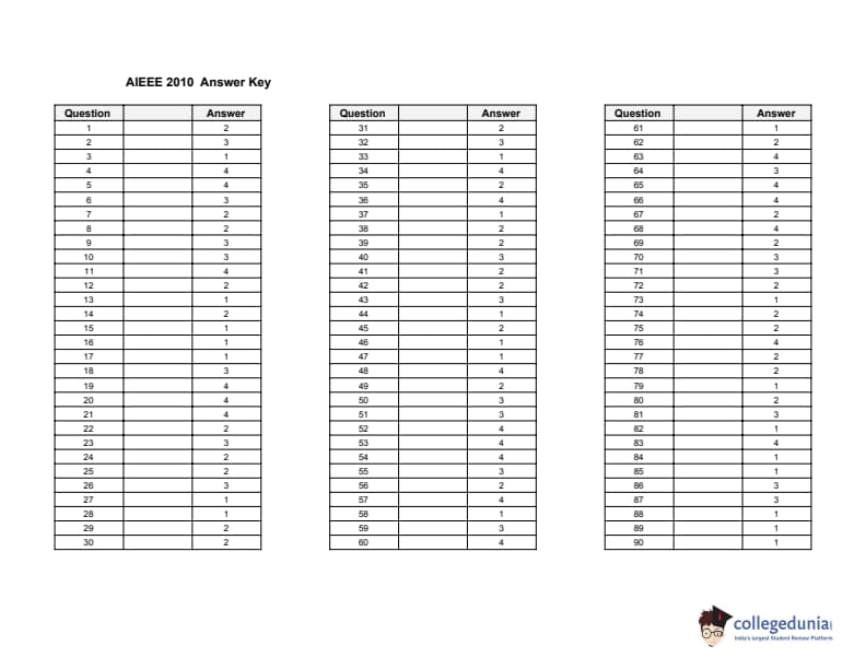 | AIEEE 2010 Question Paper | AIEEE 2010 Answer Key |