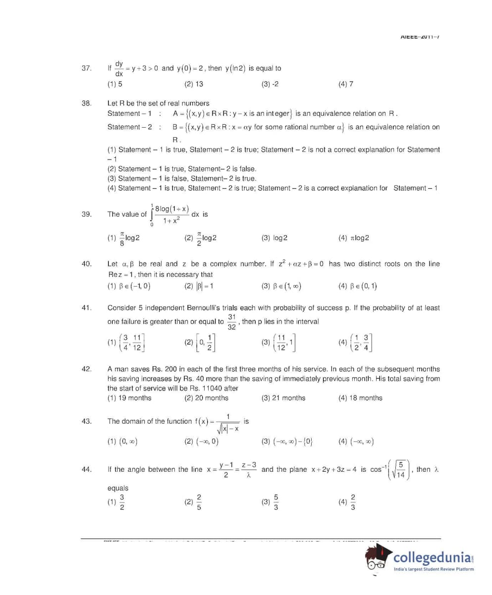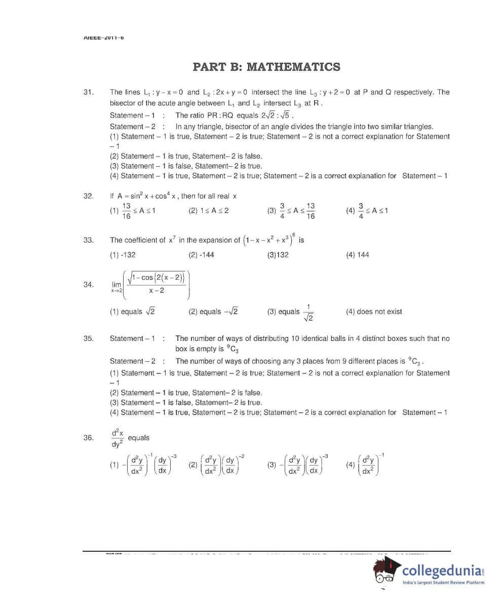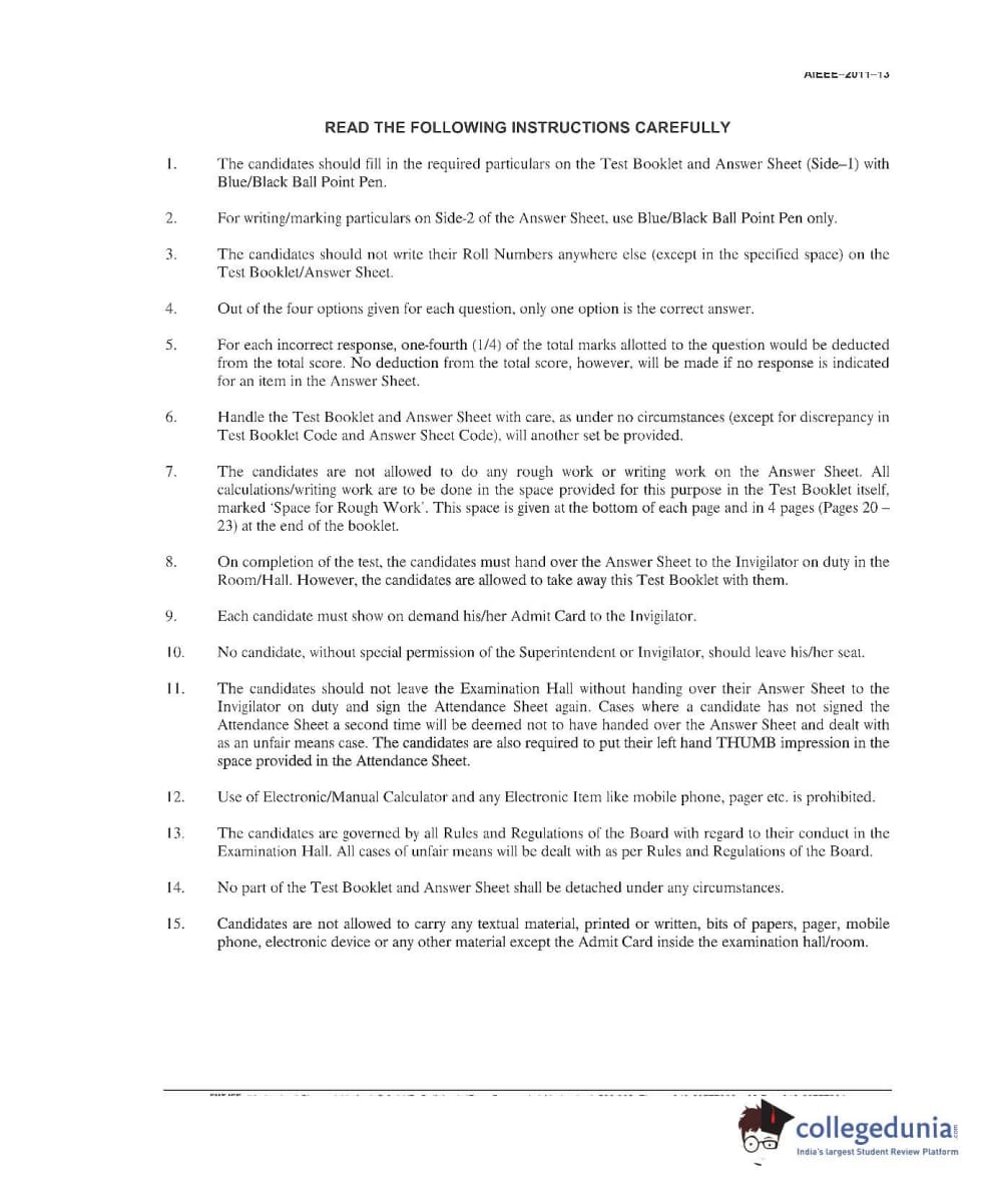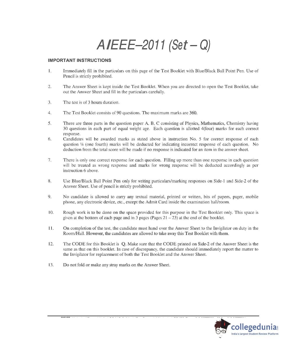 AIEEE 2011 Question Paper with answer key is available for download. AIEEE exam was replaced by JEE Main in 2013. Now JEE Main is conducted for admissions to engineering colleges in India. The pattern of AIEEE 2011 question paper was similar to that of JEE Main in terms of the subjects, duration and the number of questions asked.