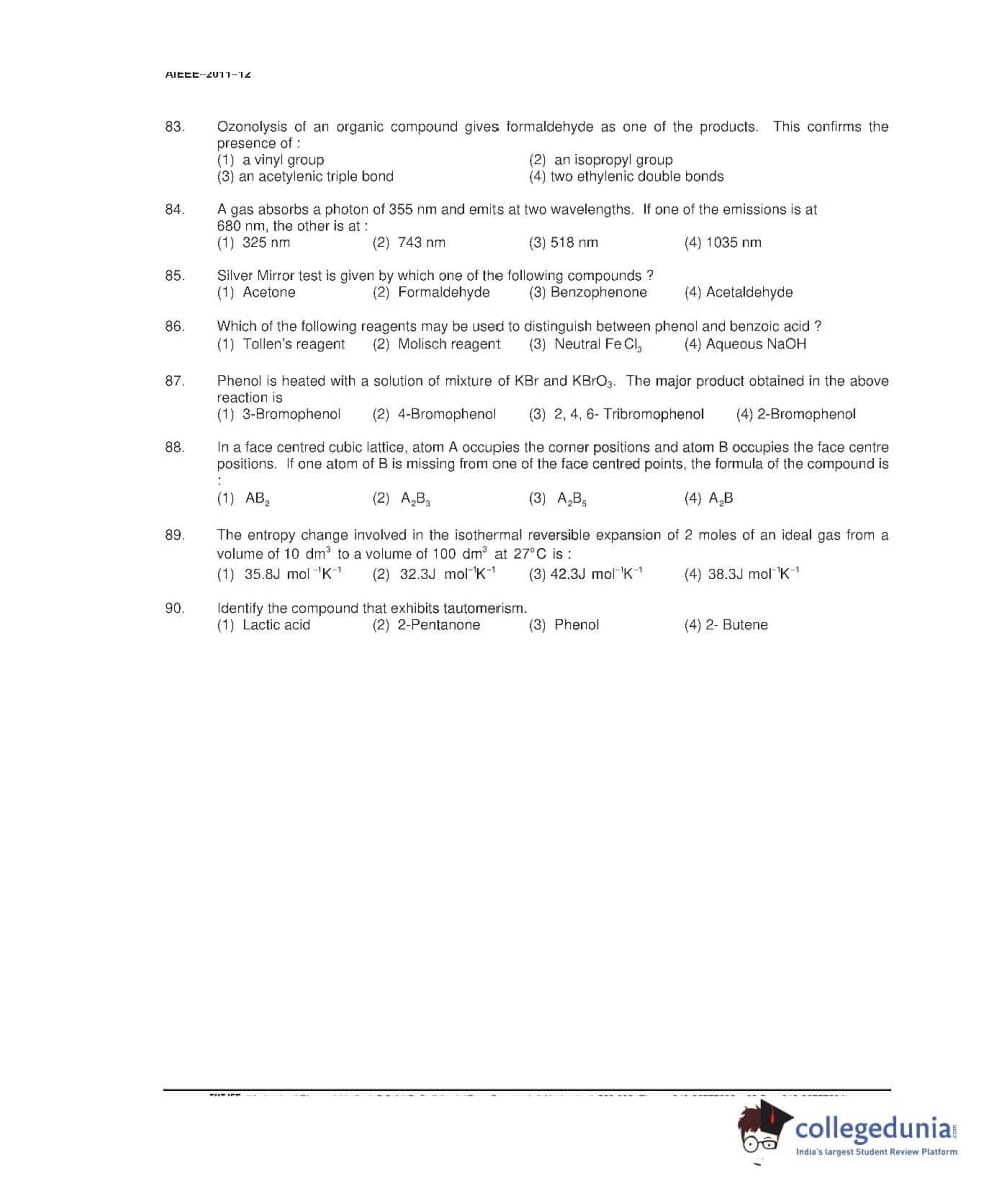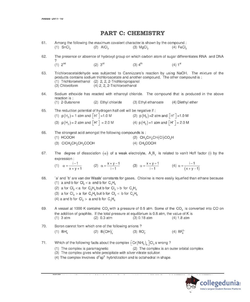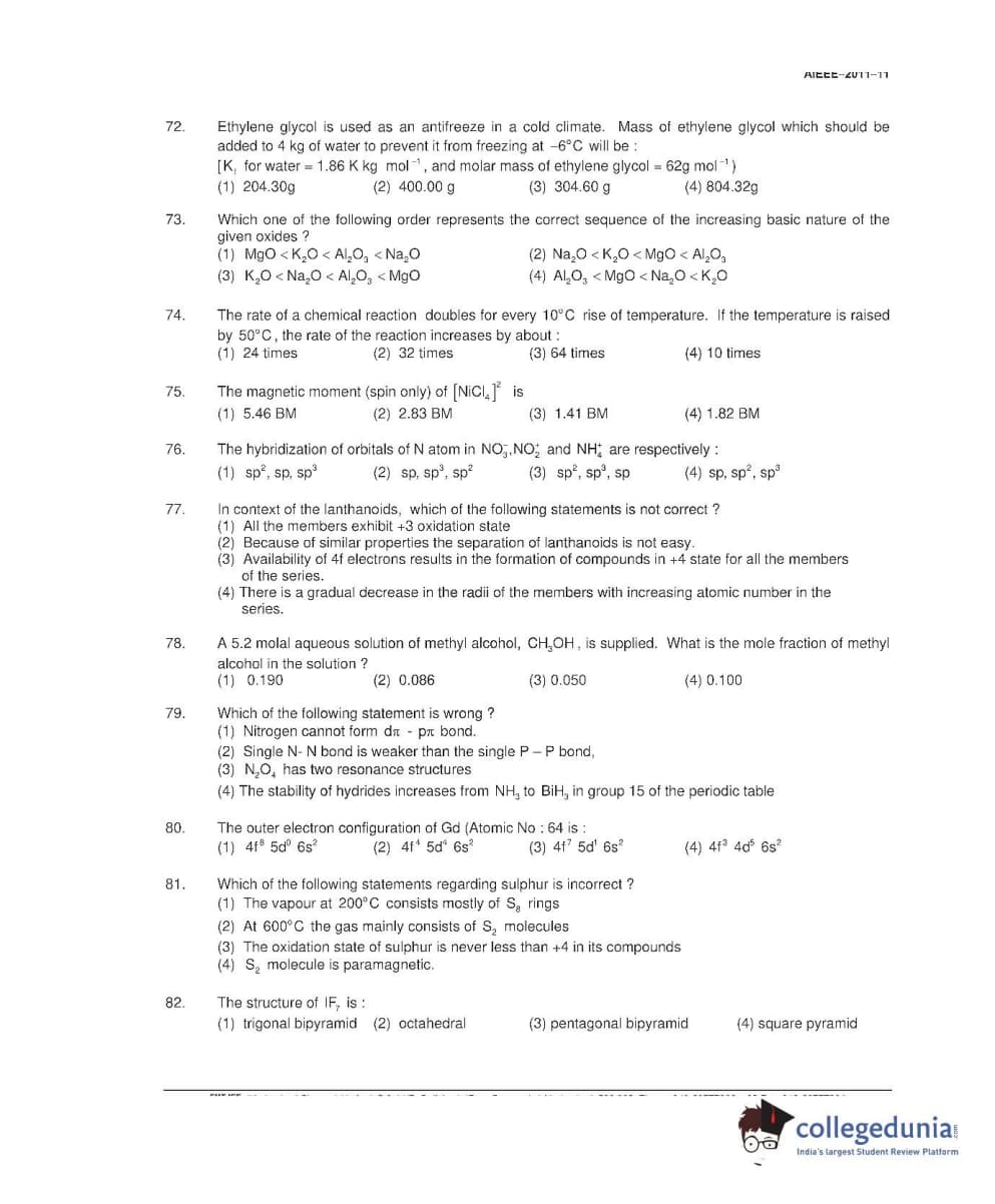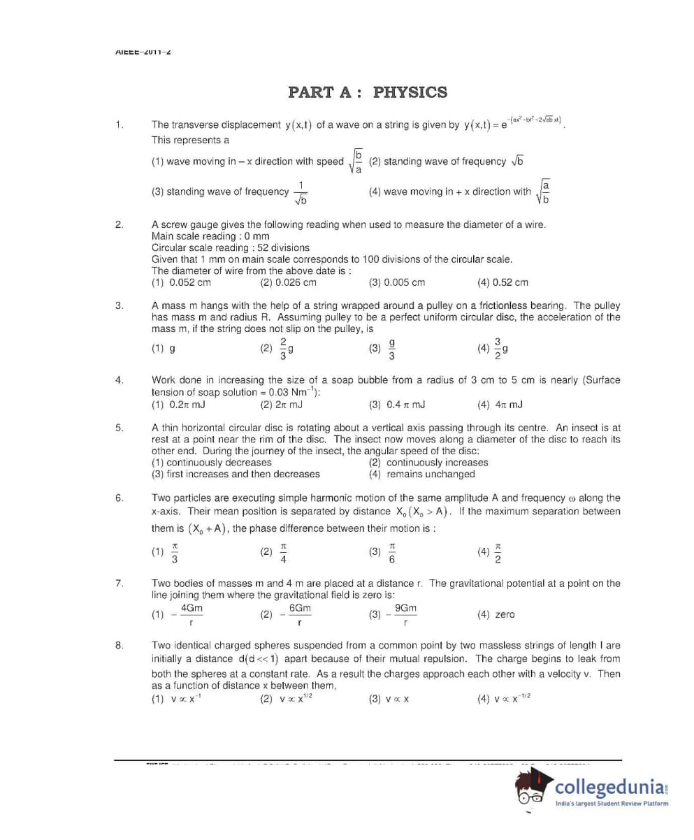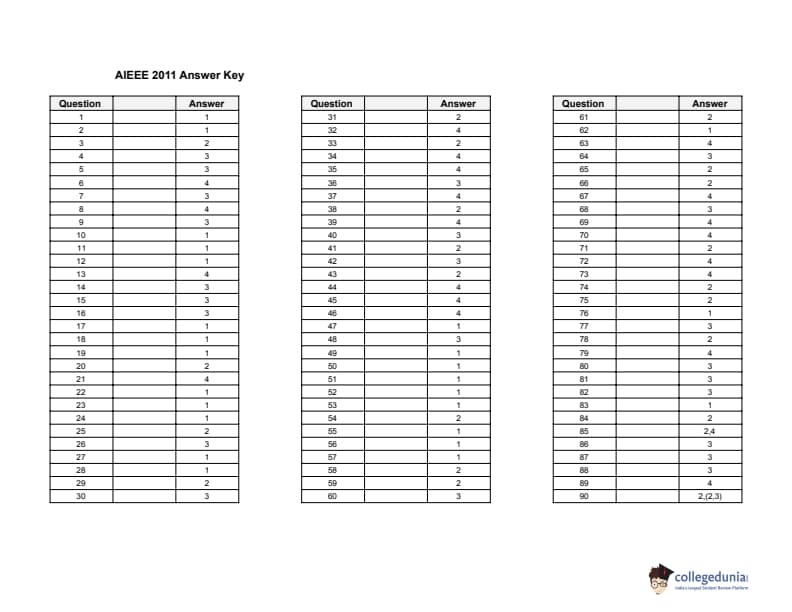 | AIEEE 2011 Question Paper | AIEEE 2011 Answer Key |