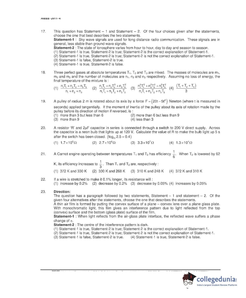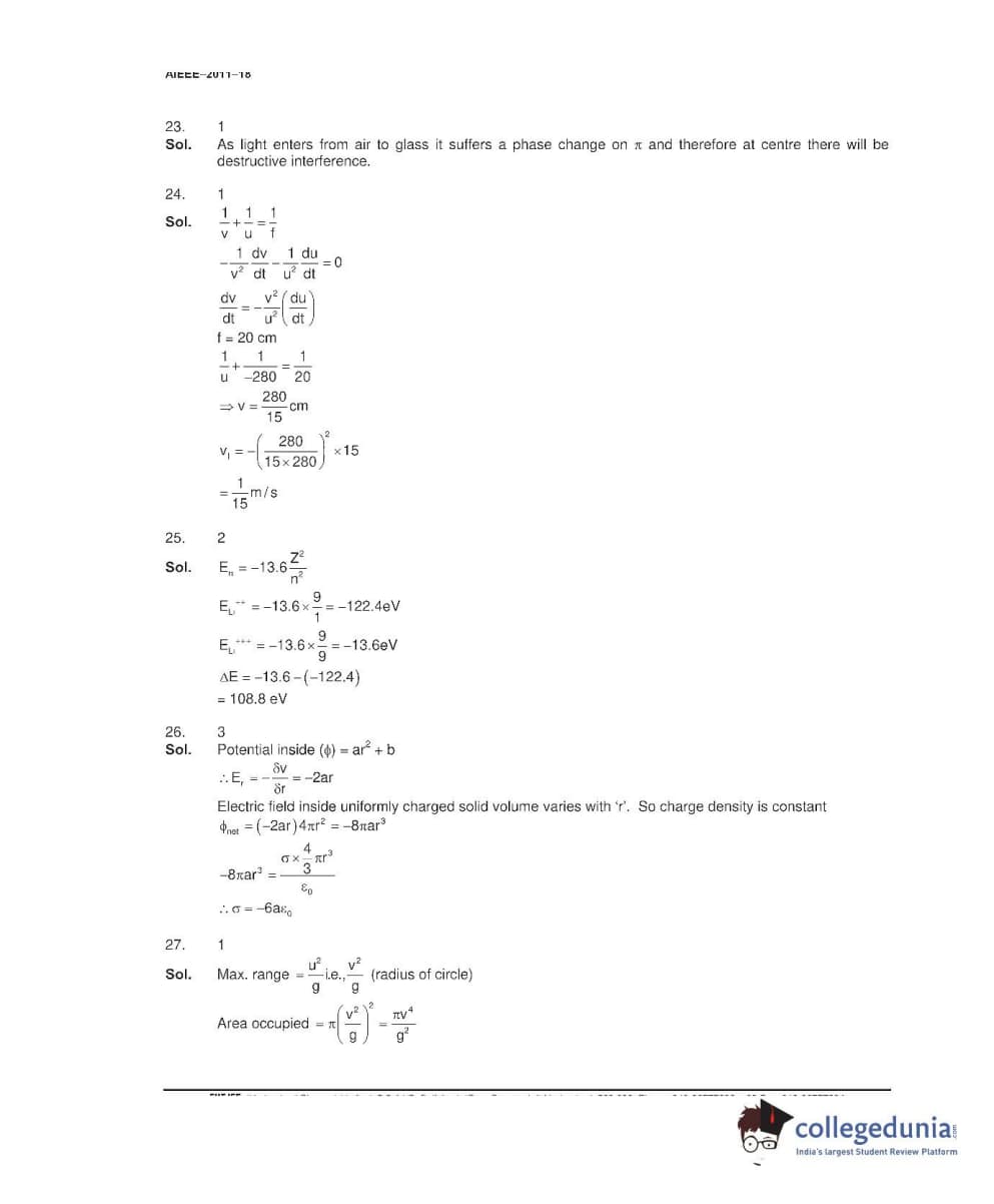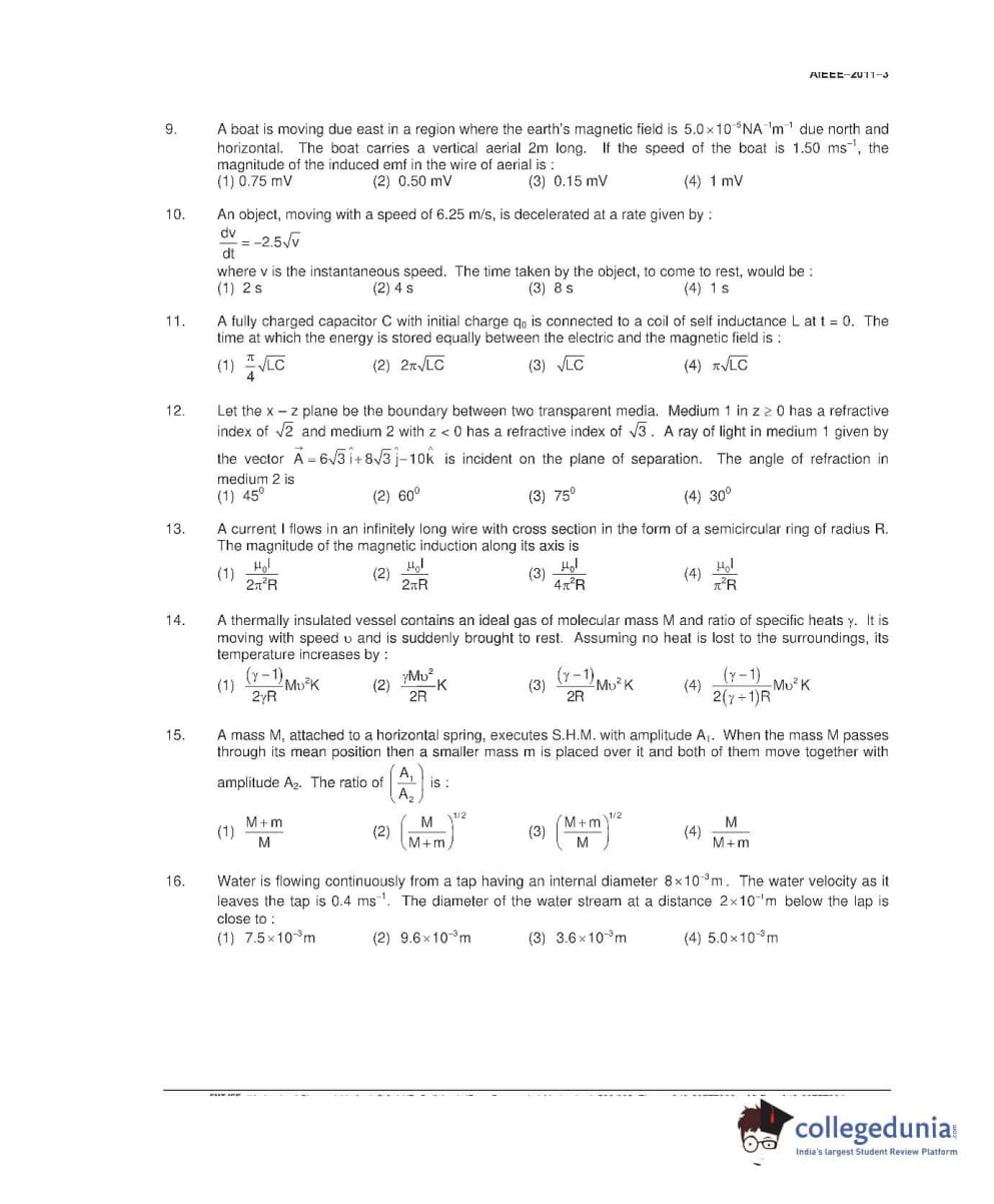 AIEEE 2011 Question Paper with Answer Key PDFs – May 01