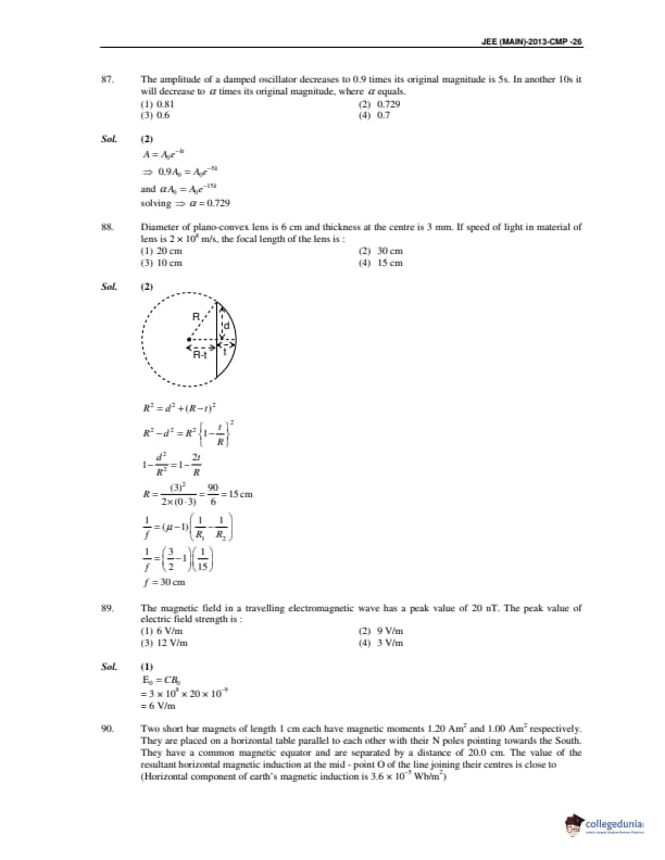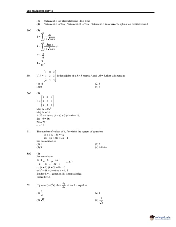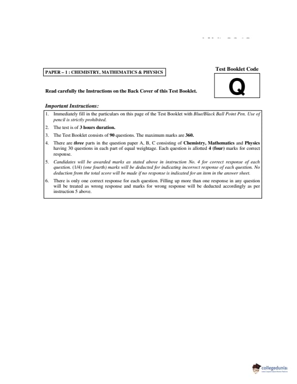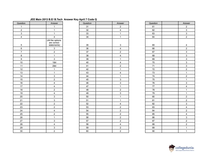 JEE Main 2013 B.E/B.Tech 2013 Question Paper with Answer Key PDF is available for download. JEE Main 2013 B.E/B.Tech was conducted on April 7, 2013 in offline mode. The overall difficulty level of the exam was easy to moderate. The question paper comprised of a total of 90 sections with 30 questions each from Physics, Chemistry, and Mathematics. With each correct answer, candidates were awarded 4 marks each.