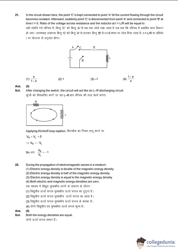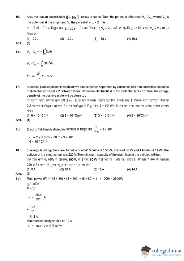 Some of the topics asked in Physics include Electrodynamics, Capacitance, Current Electricity, Electromagnetic Field, E.M.I, Electrostatic, etc. While in the Mathematics section, more weightage was given to chapters like Algebra, Coordinate Geometry, Calculus than Vector & 3 Dimensional Geometry, and Trigonometry.