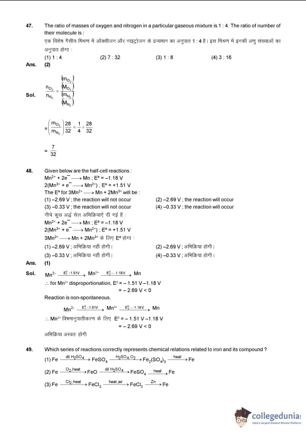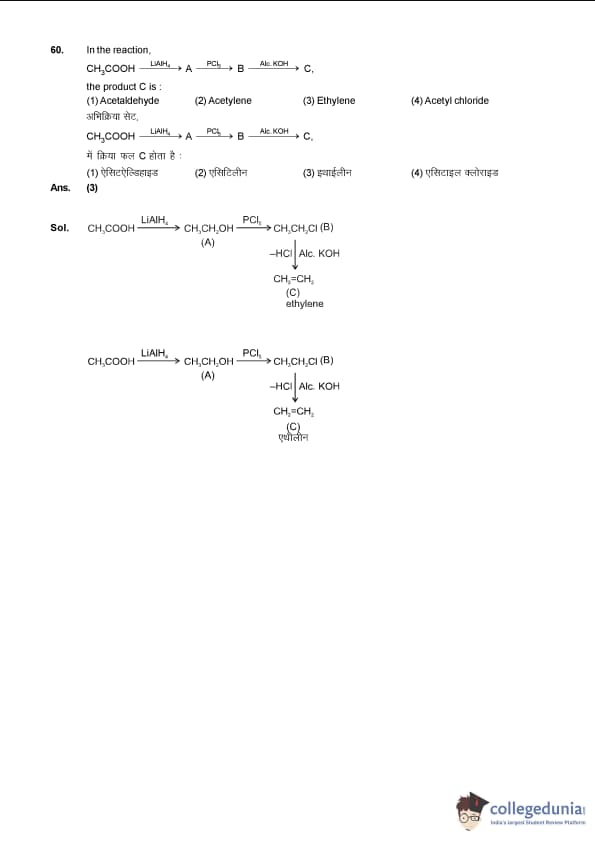 JEE Main 2014 B.E./B.Tech Question Paper (Code E) was reported to be very similar to JEE 2013 paper in terms of difficulty level. According to the exam takers, all the three parts of Chemistry- Physics, Organic and Inorganic Chemistry were easy with more questions were asked from Physical Chemistry. Inorganic Chemsitry had the least number of questions.