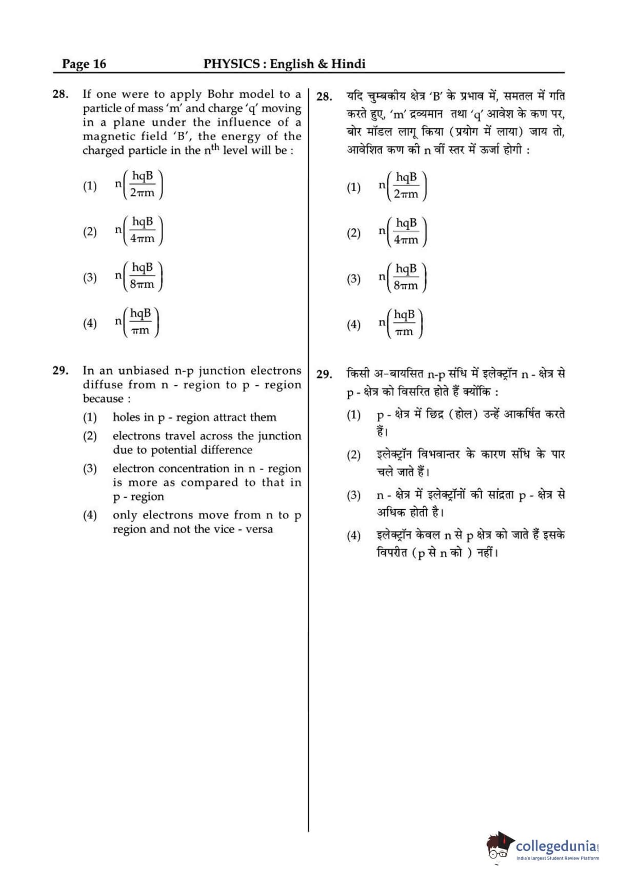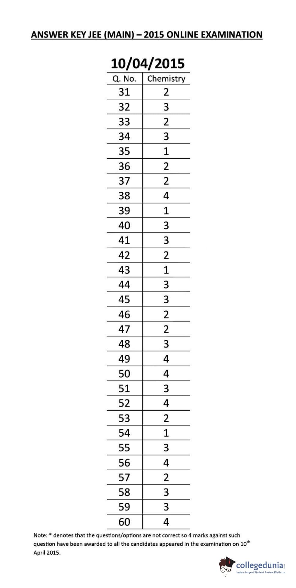 JEE Main 2015 B.E./B.Tech Question Paper with Answer Key PDFs - (April 10)