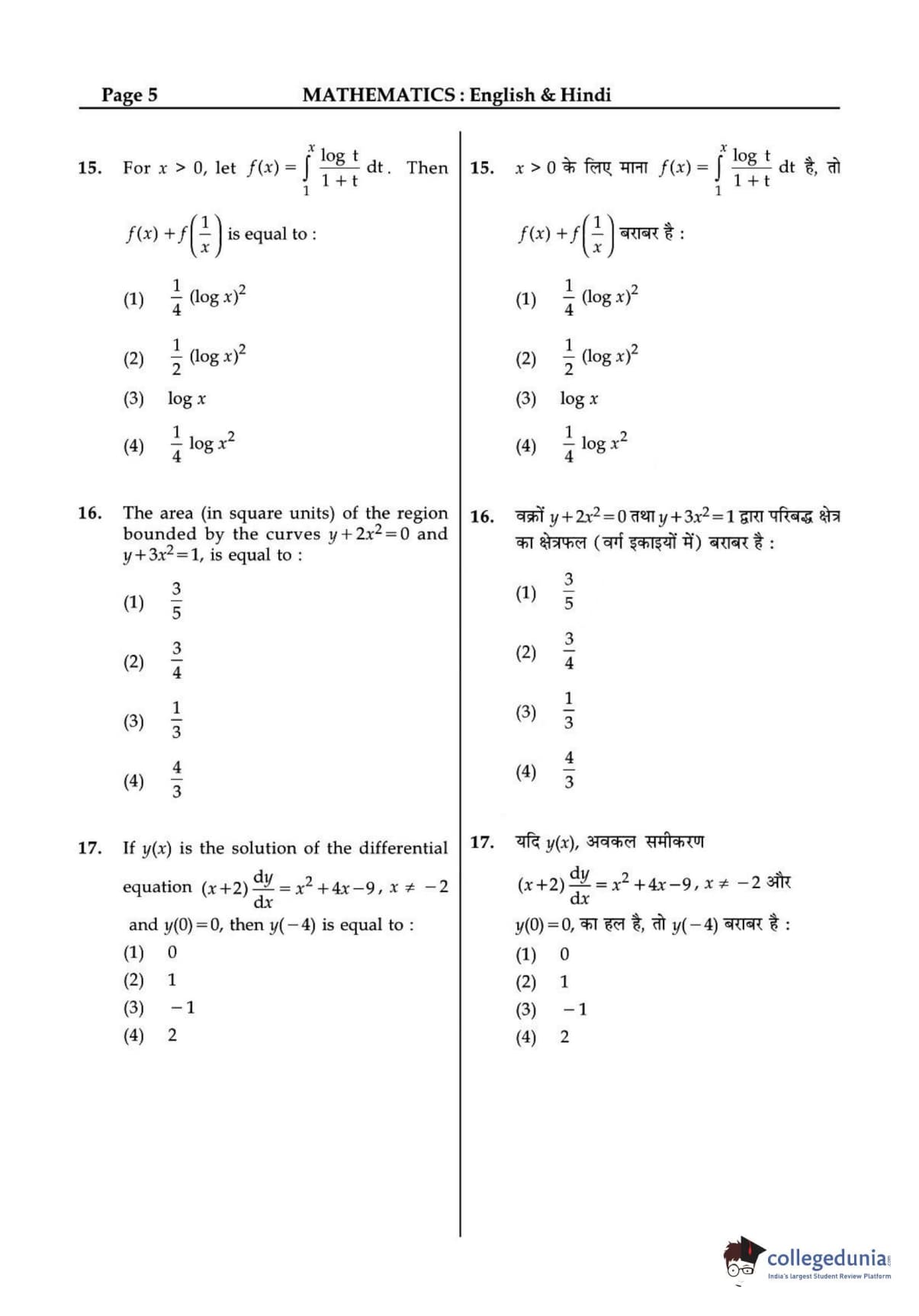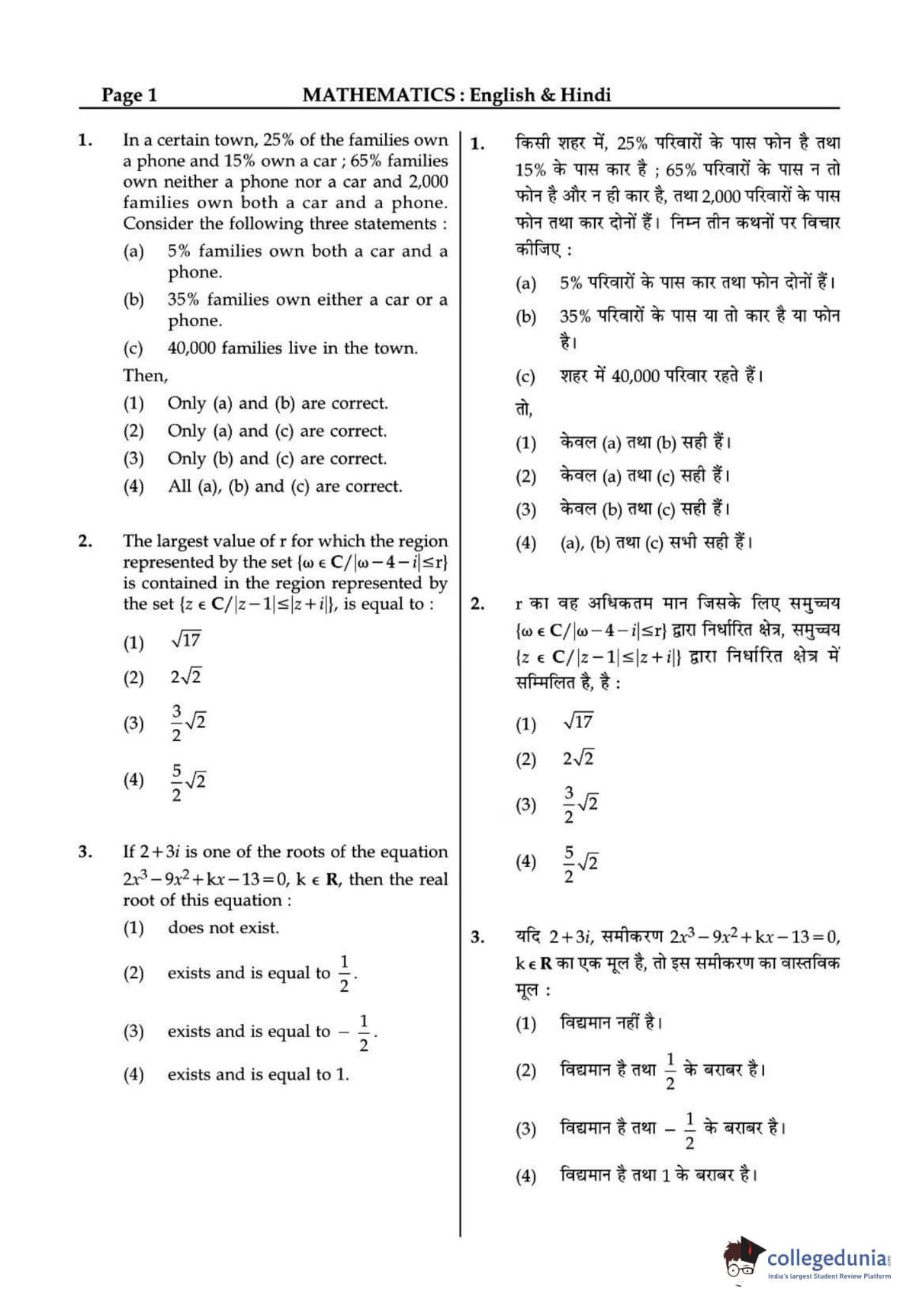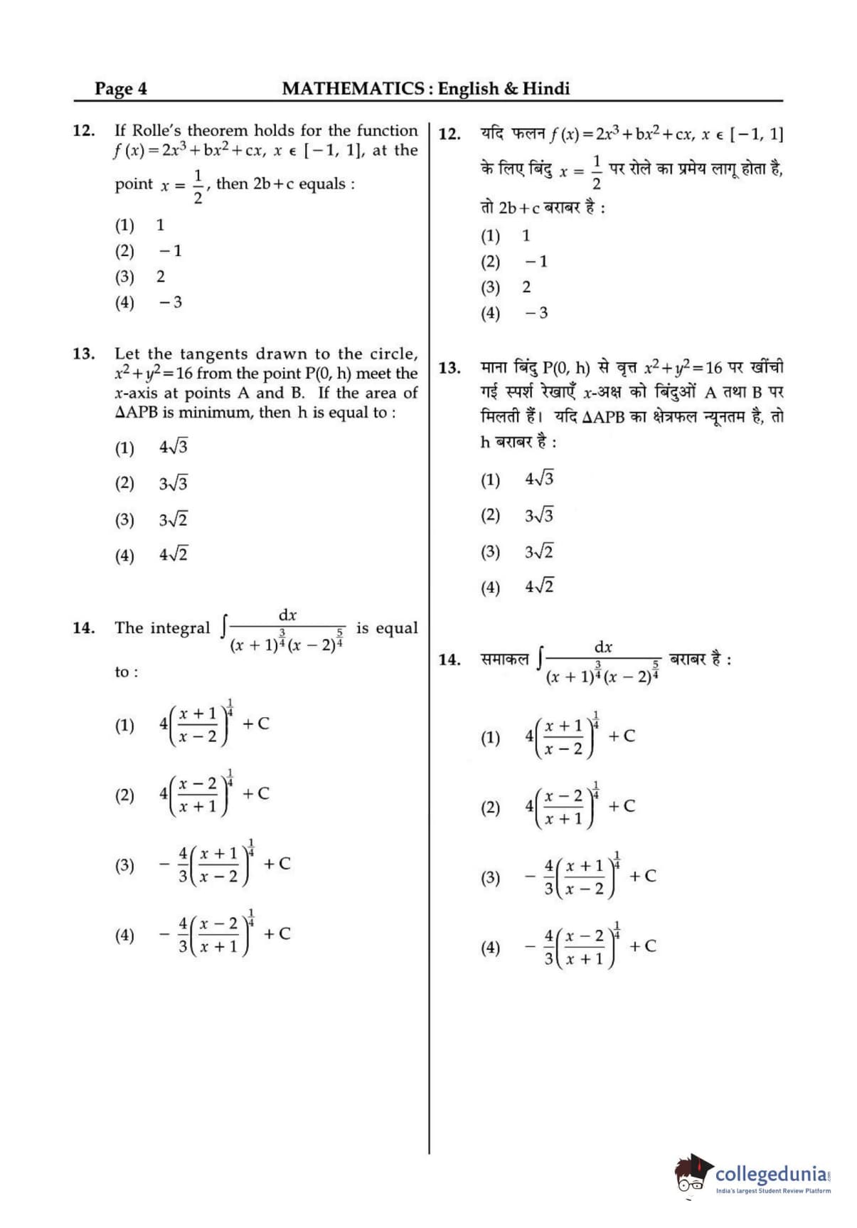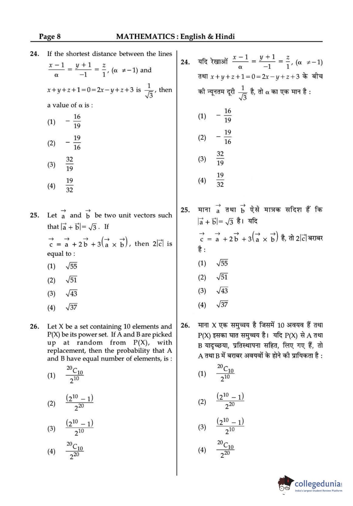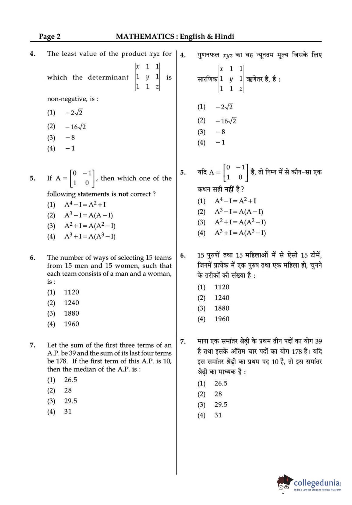 JEE Main 2015 B.E./B.Tech question paper for the exam conducted online on April 10 consisted of multiple-choice questions. The paper consisted of three sections Physics, Chemistry, and Mathematics. There were no surprises in the question paper. JEE 2015 Mathematics section included more questions from topics such as 3D and Vectors.