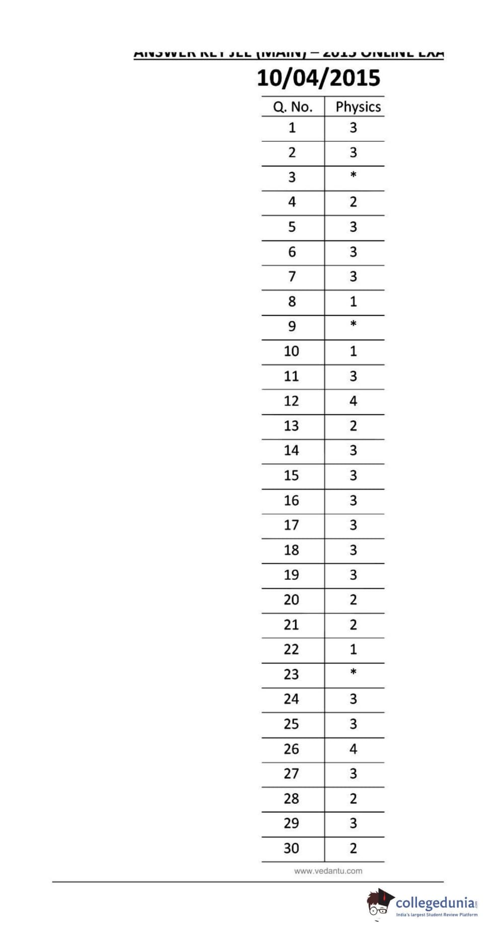 | JEE Main 2015 Question Paper | JEE Main 2015 Answer Key |