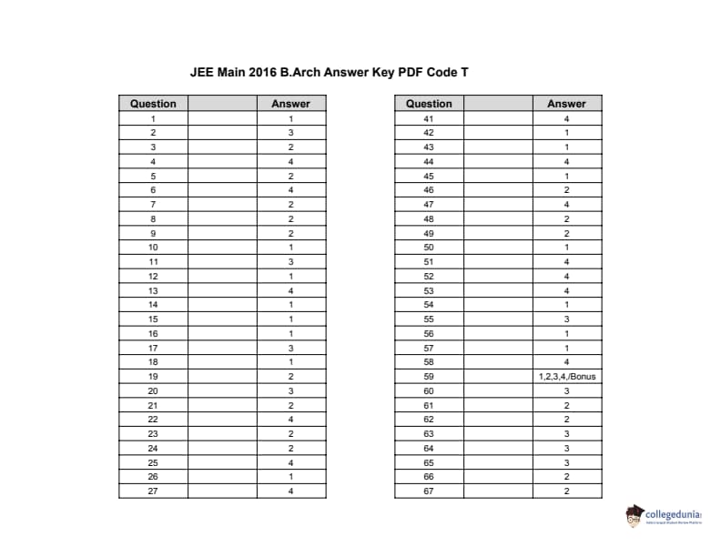 JEE Main 2016 Question paper with Answer key PDF Conducted on April 3 is available for download. The exam was successfully organized by Central Board Of Secondary Education (CBSE). In terms of difficulty level, B.Arch was of Moderate to difficulty level. The question paper comprised a total of 80 questions divided among three main sections i.e Mathematics, Aptitude and Drawing.