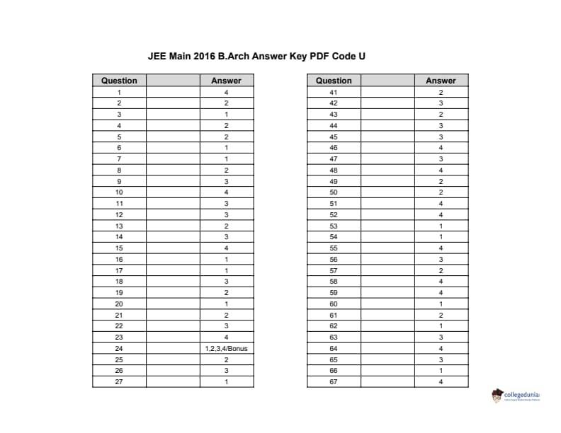JEE Main 2016 Question paper with Answer key PDF Conducted on April 3 is available for download. The exam was successfully organized by Central Board Of Secondary Education (CBSE). In terms of difficulty level, B.Arch was of Moderate to difficulty level. The question paper comprised a total of 80 questions divided among three main sections i.e Mathematics, Aptitude and Drawing.