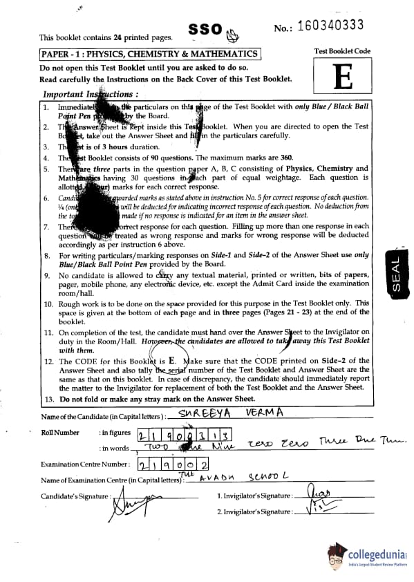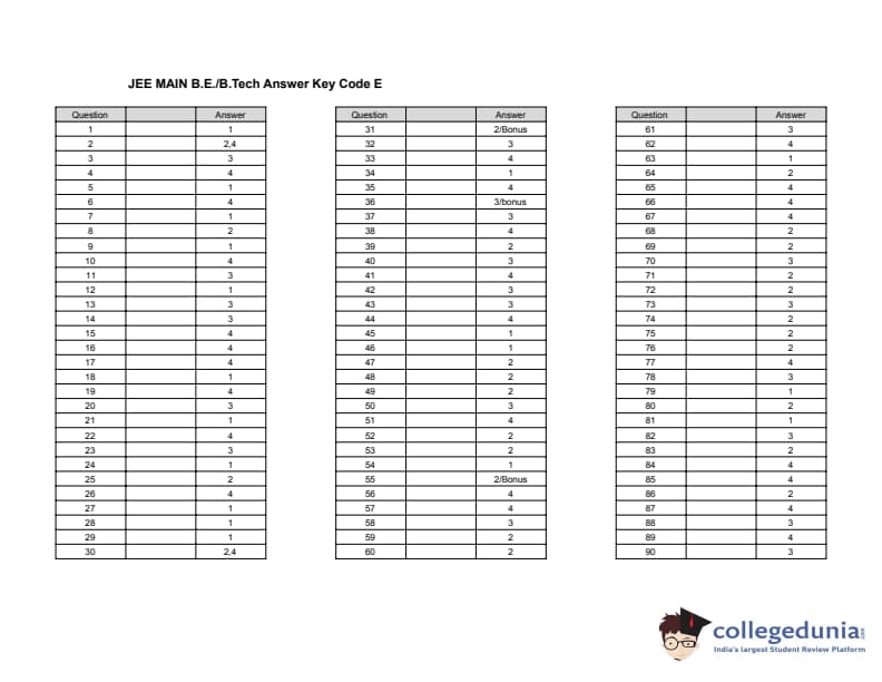 JEE Main 2016 B.E./B.Tech Question paper with answer key pdf for Code E is available for download. The exam was successfully organized by the Central Board of Secondary Education (CBSE) on April 03, 2016 in offline mode. In terms of difficulty level, JEE Main 2016 (offline mode) was tougher than last year. The question paper comprised a total of 90 questions divided among three sections: chemistry, physics, and mathematics.