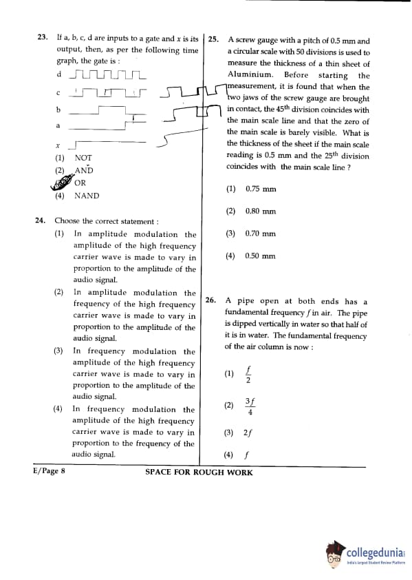 JEE Main 2016 B.E./B.Tech Question Paper with Answer Key PDF- (April 03, Code – E)