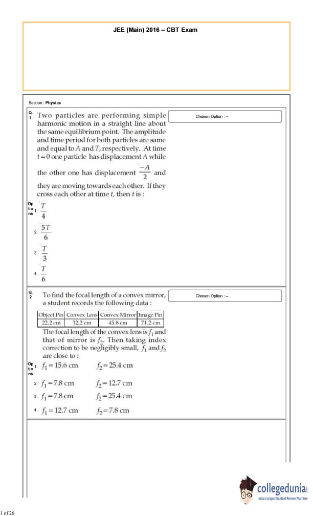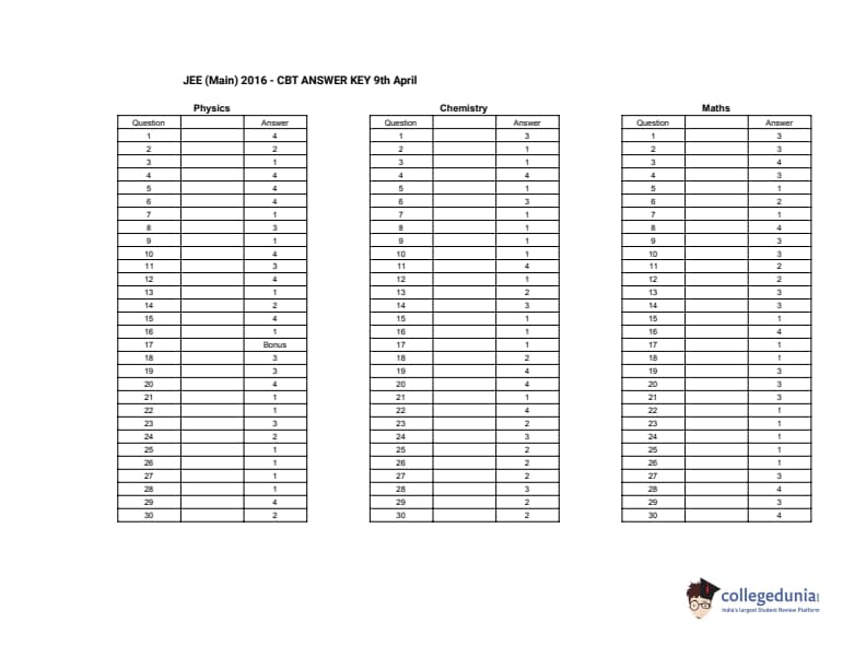 | JEE Main 2016 Question Paper | JEE Main 2016 Answer Key |