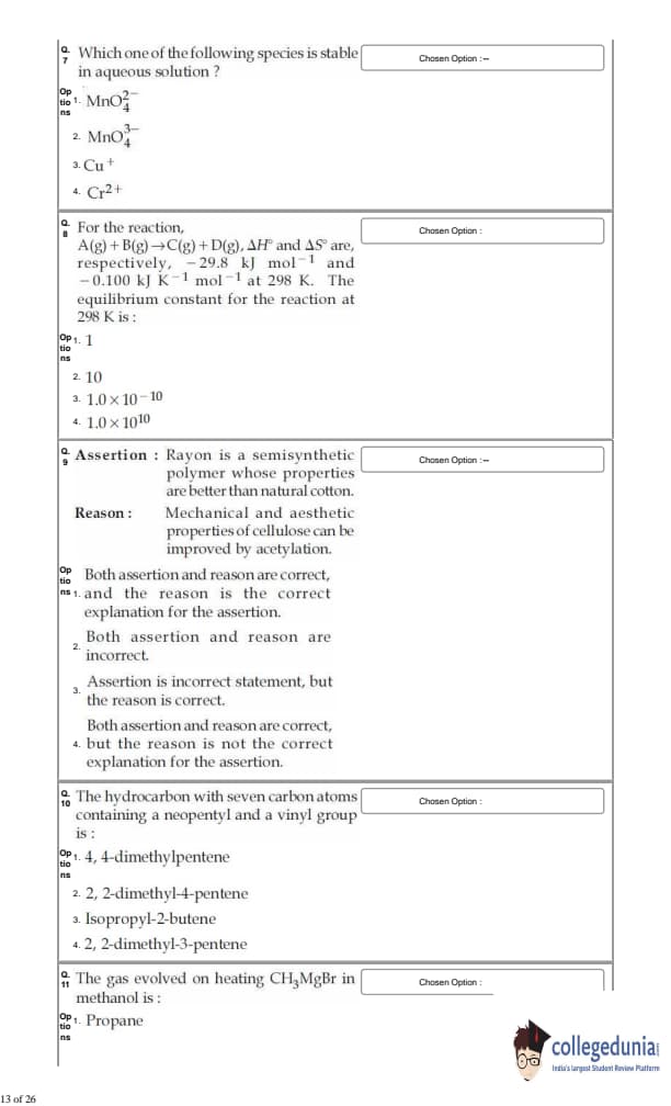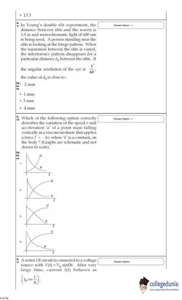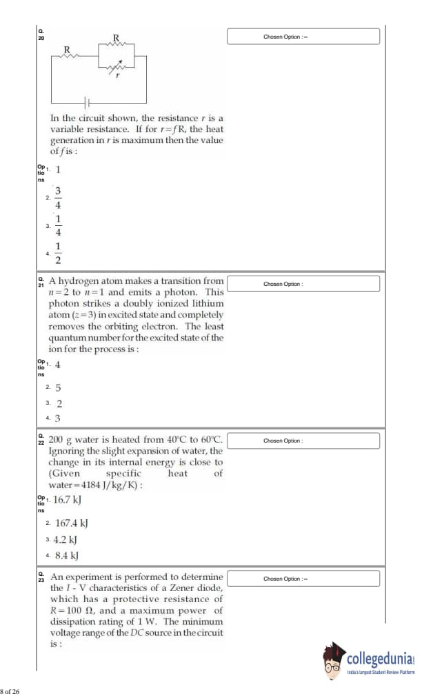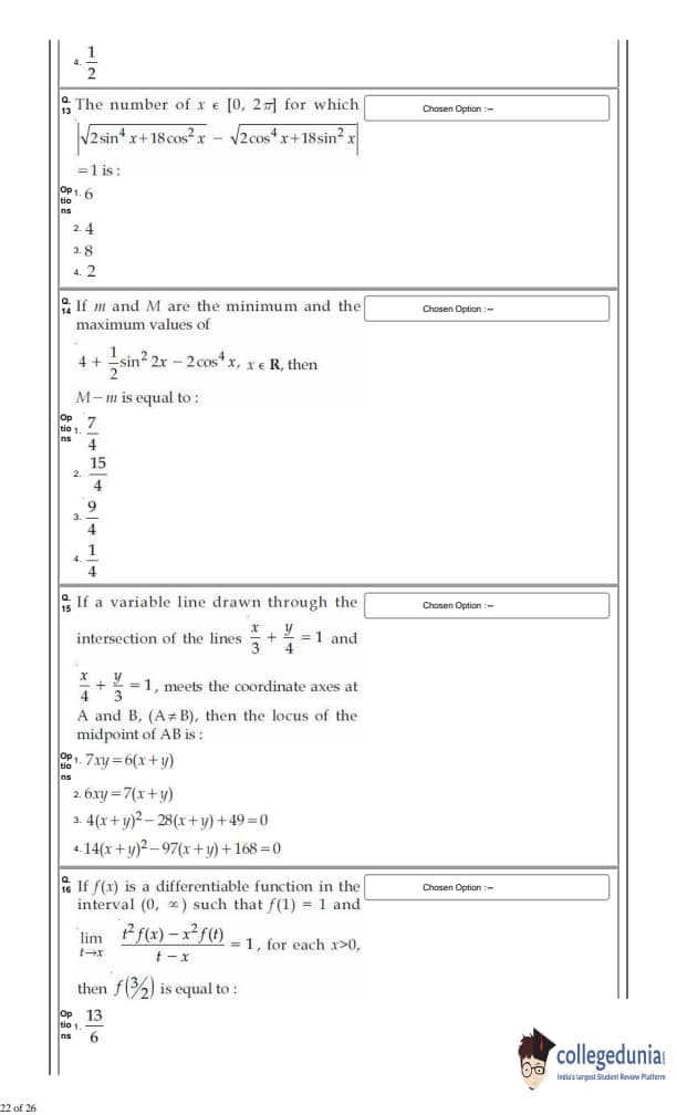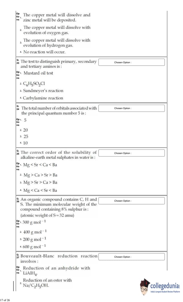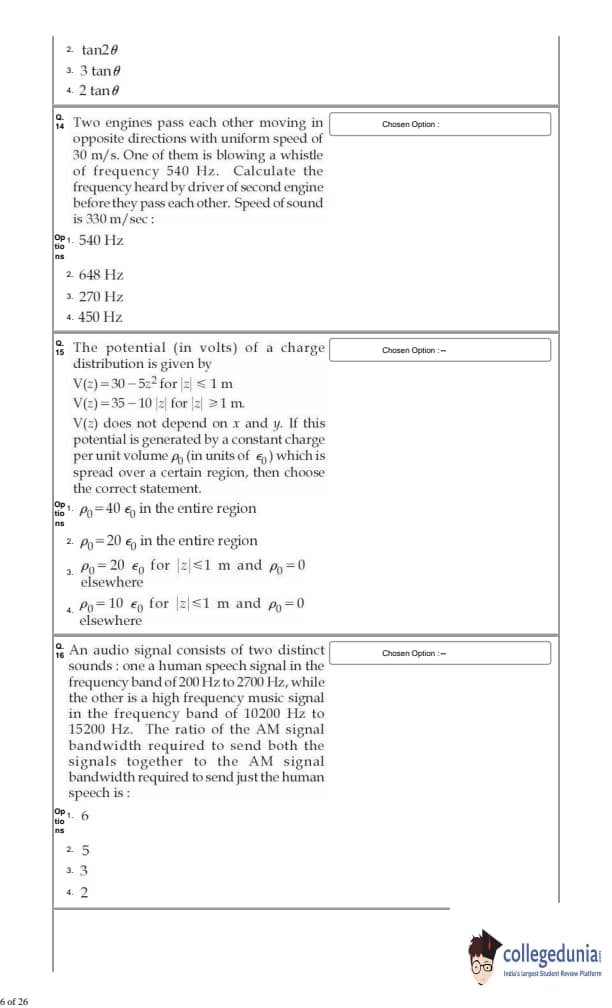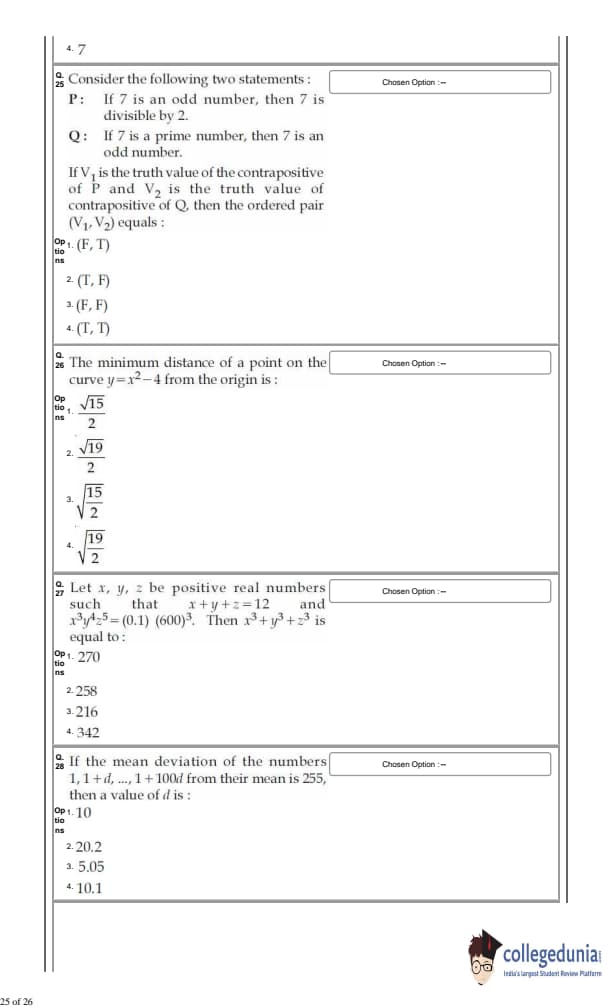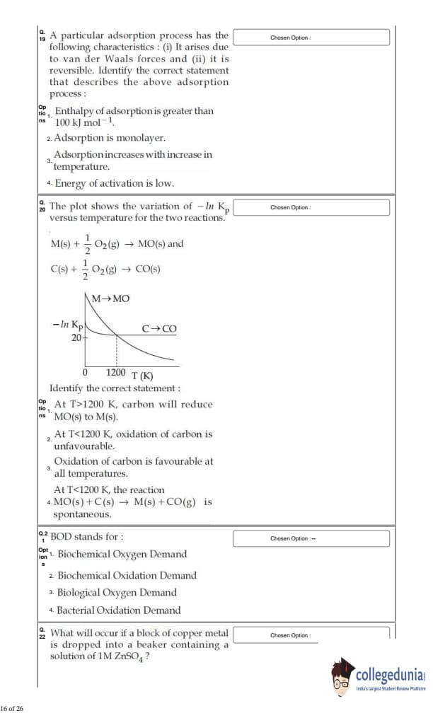 For every correct answer, candidates got +4 marks and for each wrong attempt -¼ of the total marks were deducted.