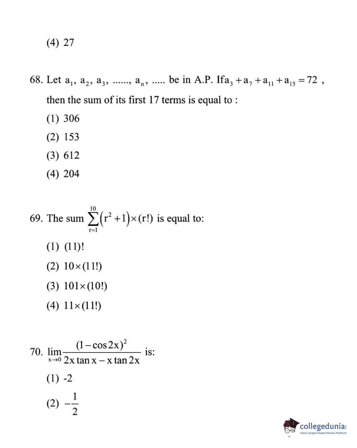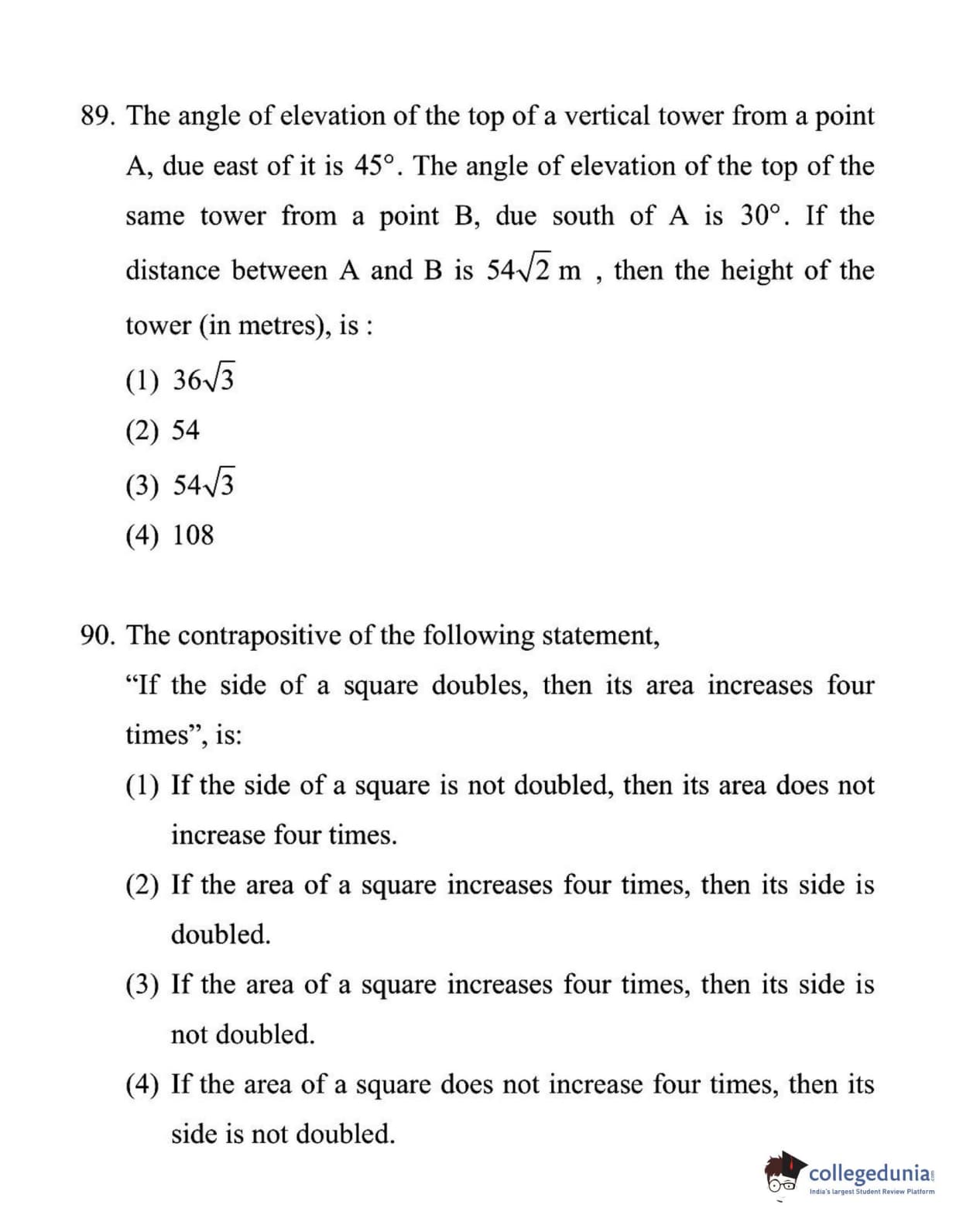 For every correct answer, candidates got +4 marks and for each wrong attempt -¼ of the total marks were deducted.