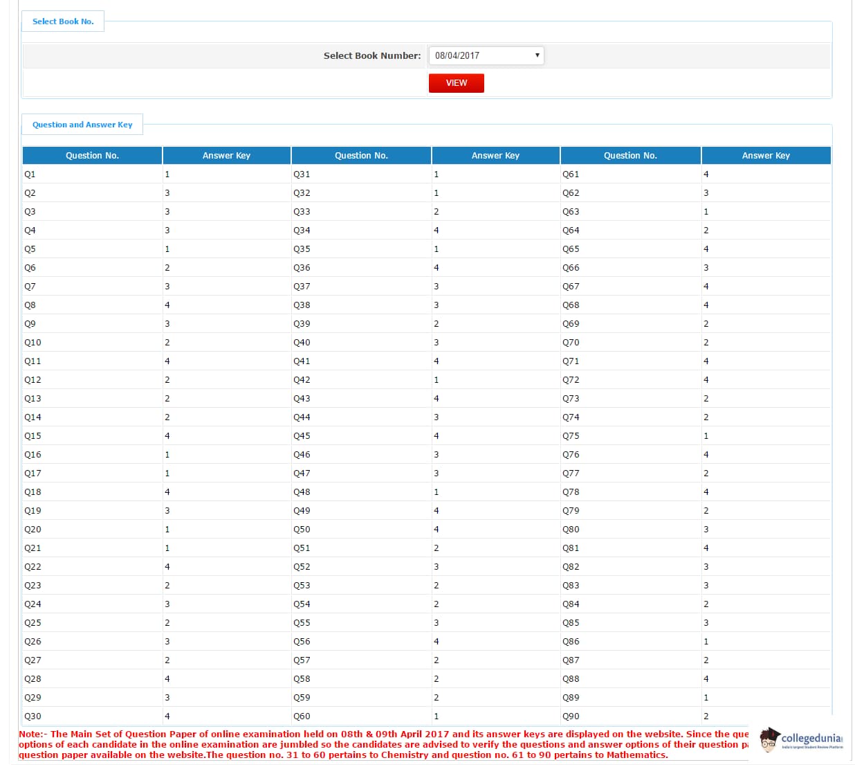| JEE Main 2017 Question Paper PDF | JEE Main 2017 Answer key PDF |