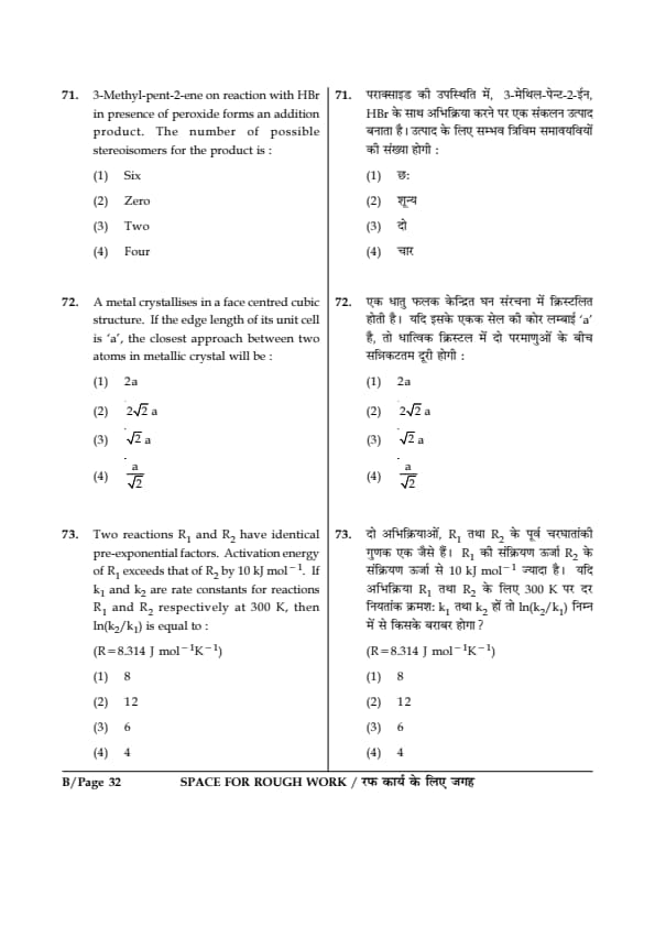 - Chemistry was considered the easiest of all three papers