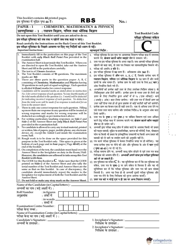 JEE Main 2017 Question paper Set C with Answer key PDF Conducted on April 2 is available for download. The exam was successfully organized by Central Board Of Secondary Education (CBSE). In terms of difficulty level, B.E./B.Tech was of Moderate level. The question paper comprised a total of 90 questions divided among 3 sections.