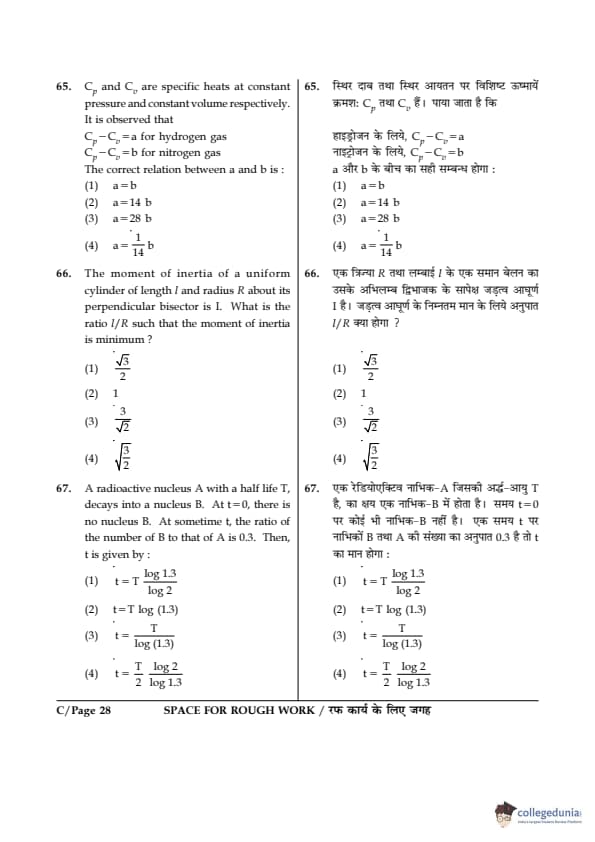 JEE Main 2017 Question Paper Set C with Answer Key PDF- April 2