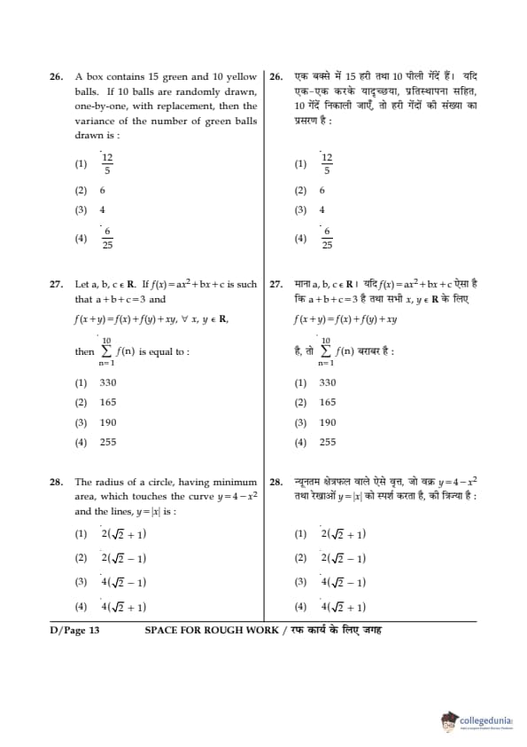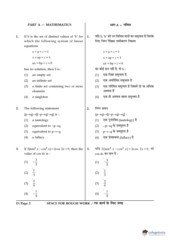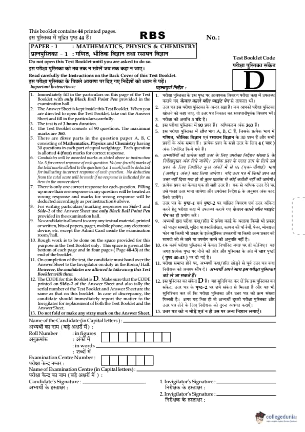 JEE Main 2017 Question paper SET D with Answer key PDF Conducted on April 2 is available for download. The exam was successfully organized by Central Board Of Secondary Education (CBSE). In terms of difficulty level, B.E./B.Tech was of Moderate level. The question paper comprised a total of 90 questions divided among 3 sections.