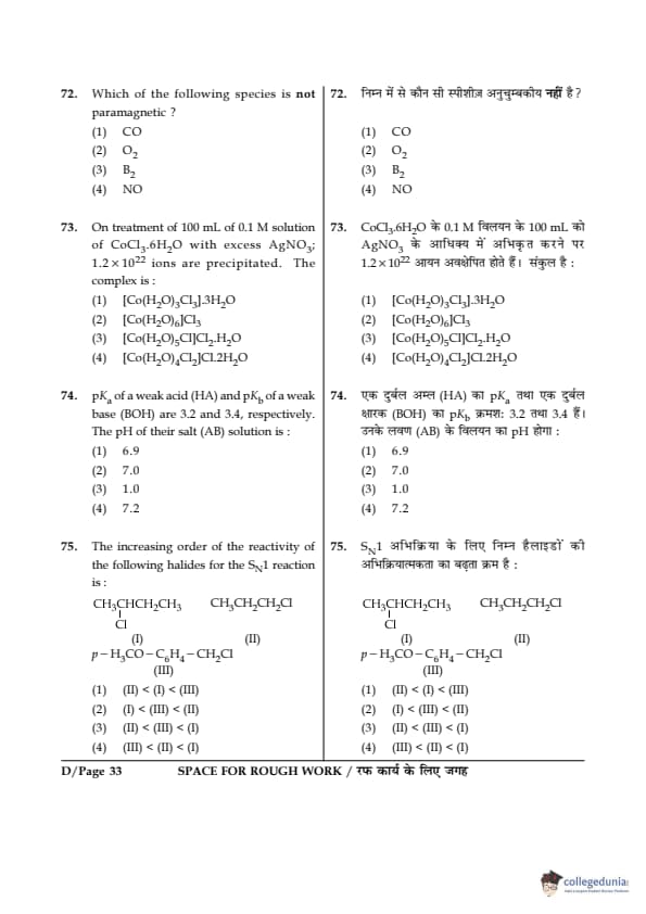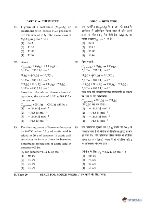 - Chemistry was considered the easiest of all three papers