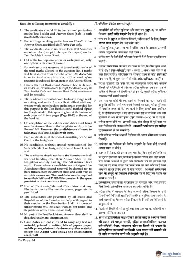 For every correct answer, candidate got 4 and for each wrong attempt -1 marks were deducted.