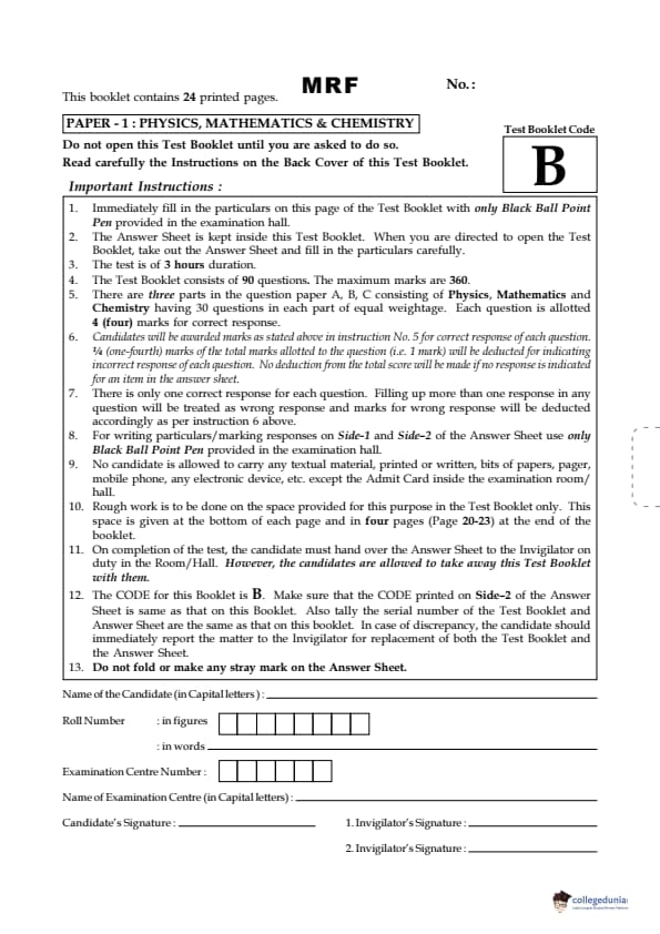 JEE Main B.E./B.Tech Previous Year Question Papers